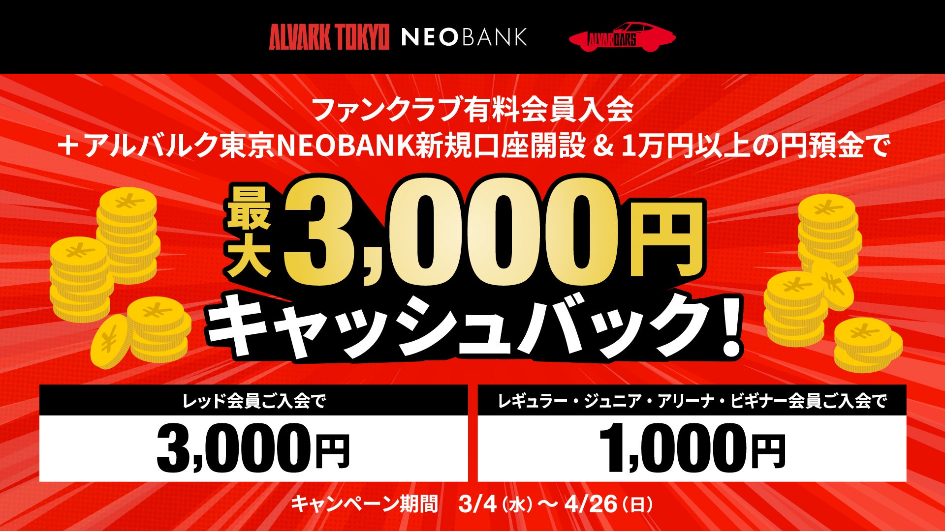 ファンクラブ入会&アルバルク東京NEOBANK新規口座開設キャッシュバックキャンペーンのお知らせ