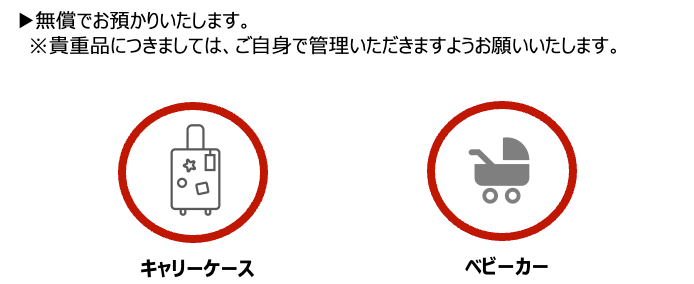 - ・手荷物検査時には、かばん、キャリーケース等手荷物となるものの口を開けて係員にお見せください。