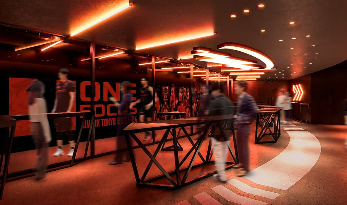 3階コンコース北西部の「ALVARK AREA」は、TOYOTA ARENA TOKYOをホームアリーナとするアルバルク東京について知ることができる展示エリアです。フォトスポットになるアルバルク東京ロゴの大きなオブジェのほか、チームの歴史に触れることができる展示や、実際に選手が使用するクラブハウスのロッカーを展示します。