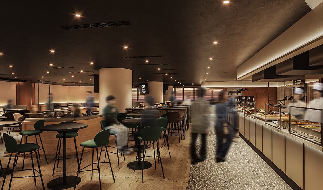 このアリーナで最も特徴的な「JAPAN AIRLINES TERRACE SUITE」や、ライブキッチンがあるラウンジなど、ラグジュアリーなホスピタリティエリアにも注力しています。