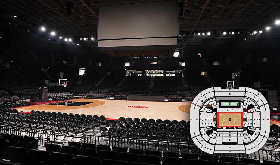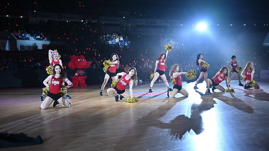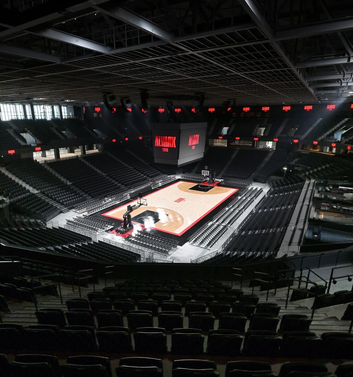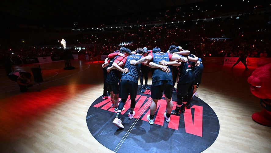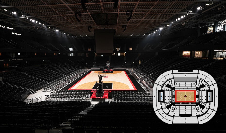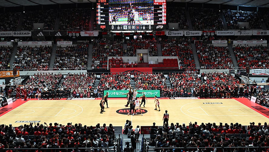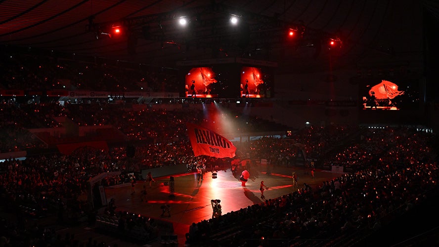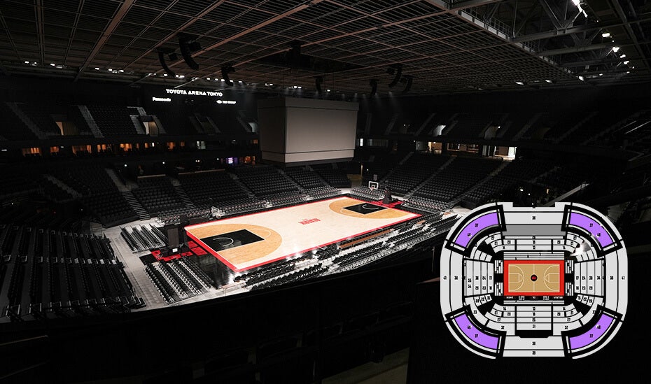 約10,000席の観客席のメインアリーナは、オーバル型でどこの席から見ても正面にコートがある見やすい設計。合計1,000㎡を超えるビジョンで展開される演出は圧巻です!