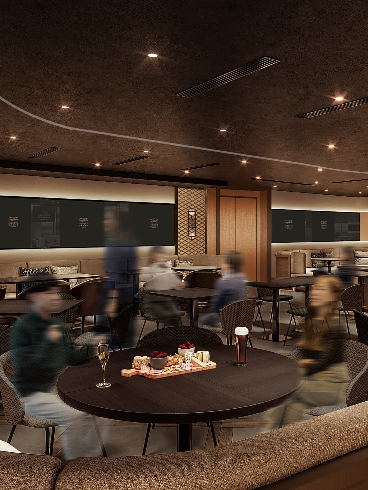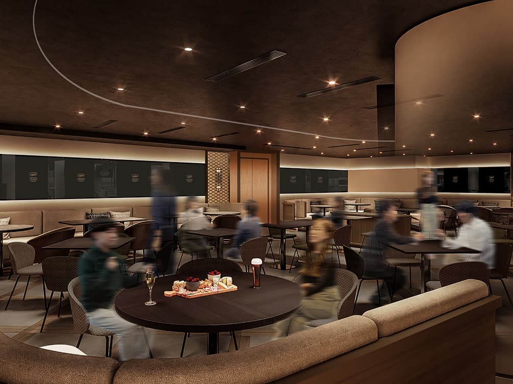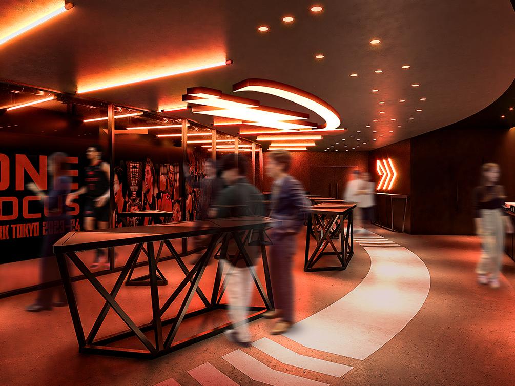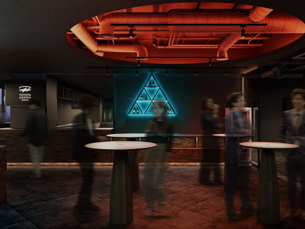 スタンディング中心でカジュアルでありながら、いつもよりは贅沢な雰囲気が味わえる空間。バスケットボールという共通の話題を語らいながら親睦を深めることができるラウンジです。