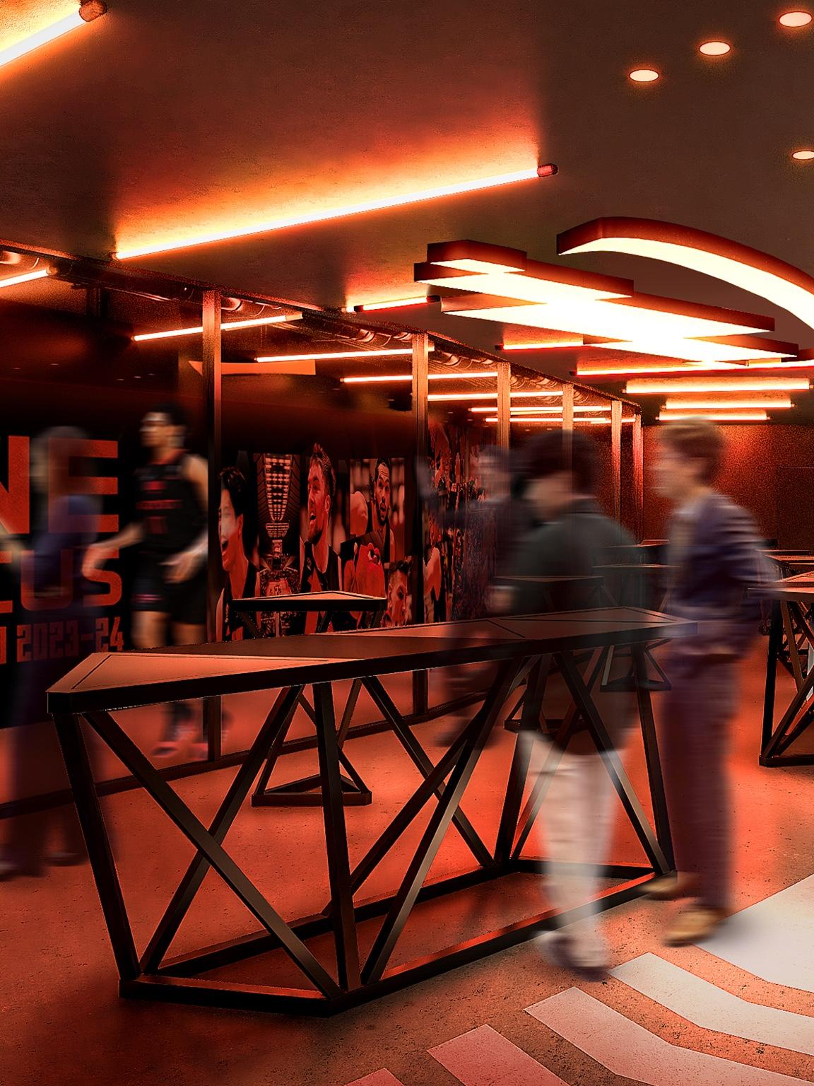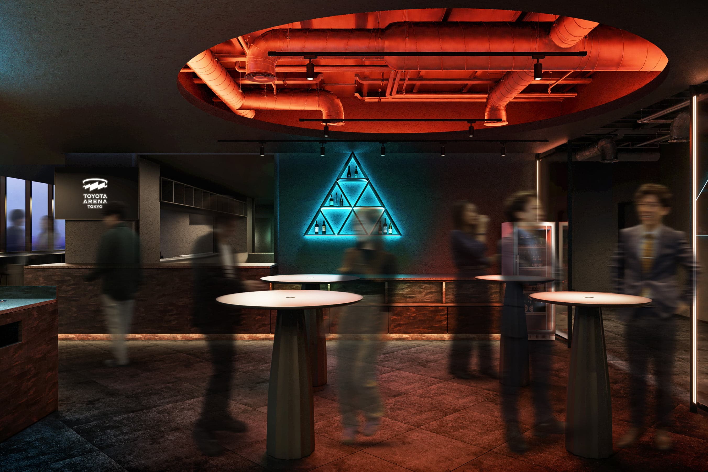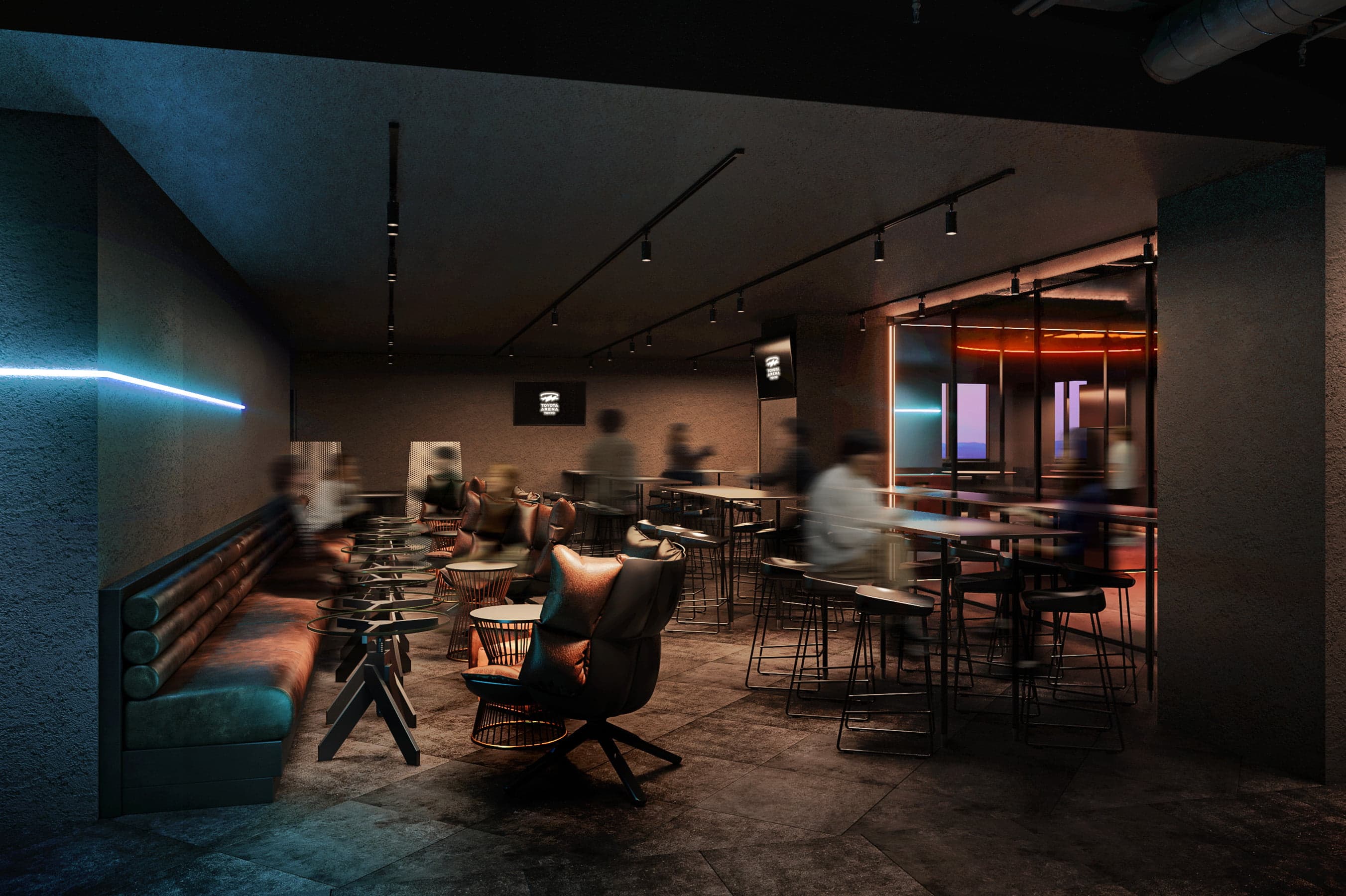 スタンディング中心でカジュアルでありながら、いつもよりは贅沢な雰囲気が味わえる空間。バスケットボールという共通の話題を語らいながら親睦を深めることができるラウンジです。
