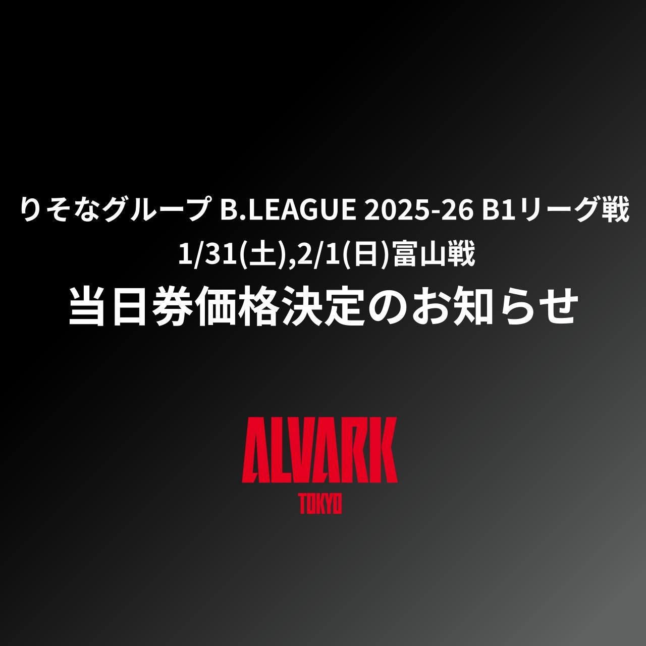 りそなグループ B.LEAGUE 2025-26 B1リーグ戦 1/31(土),2/1(日)富山戦 当日券価格決定のお知らせ