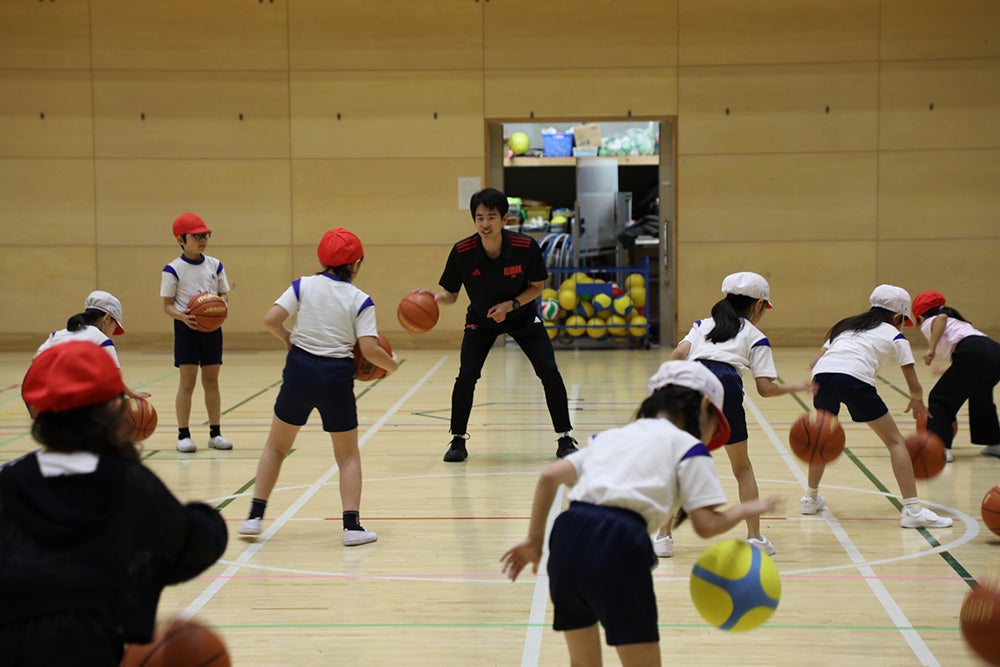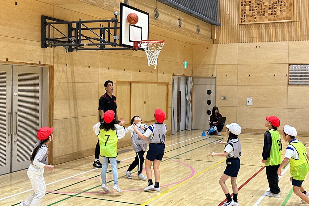 初めてバスケットボールに触れる子どもたちも多くいましたが、一生懸命にボールを追いかける姿や、果敢にシュートに挑戦する姿が見られ、全員が笑顔で全力で楽しんでいる様子が印象的でした。