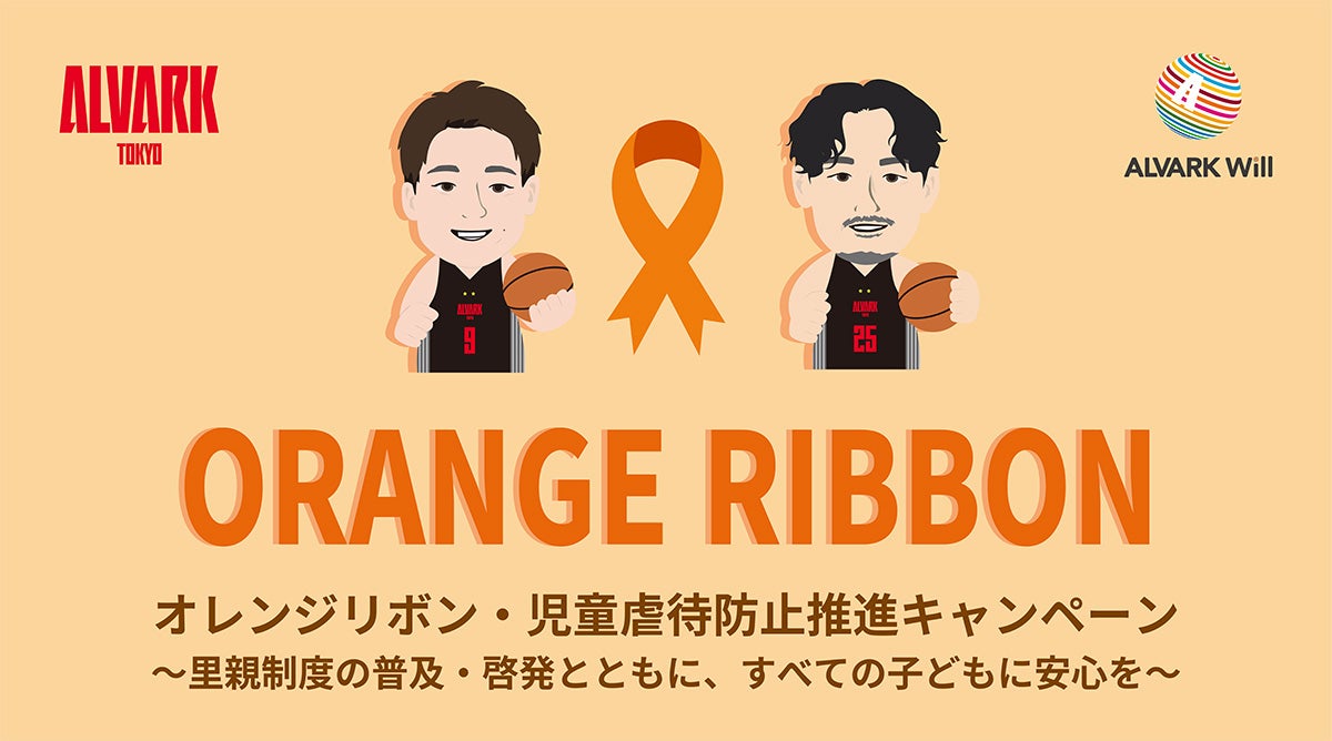 アルバルク東京では、#9 安藤周人選手、#25 福澤晃平選手を中心に、すべての子どもが安心して笑顔で暮らせる社会を目指して、オレンジリボン・児童虐待防止推進と里親制度の啓発に取り組んでいます。 今シーズンも、これまでのオレンジリボン活動・里親制度に関するパネル展示や、クイズ企画、SNSキャンペーンを実施します。
