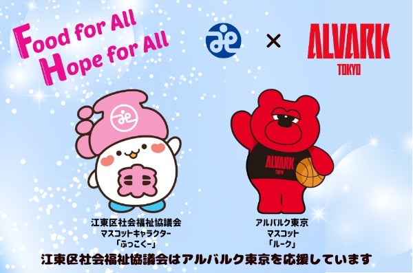 寄付していただいた食品は江東区社会福祉協議会を通じて、食品を必要とされている方々に届けられます。また、寄付していただいた方には江東区社会福祉協議会×アルバルク東京オリジナルステッカーをプレゼントします。
