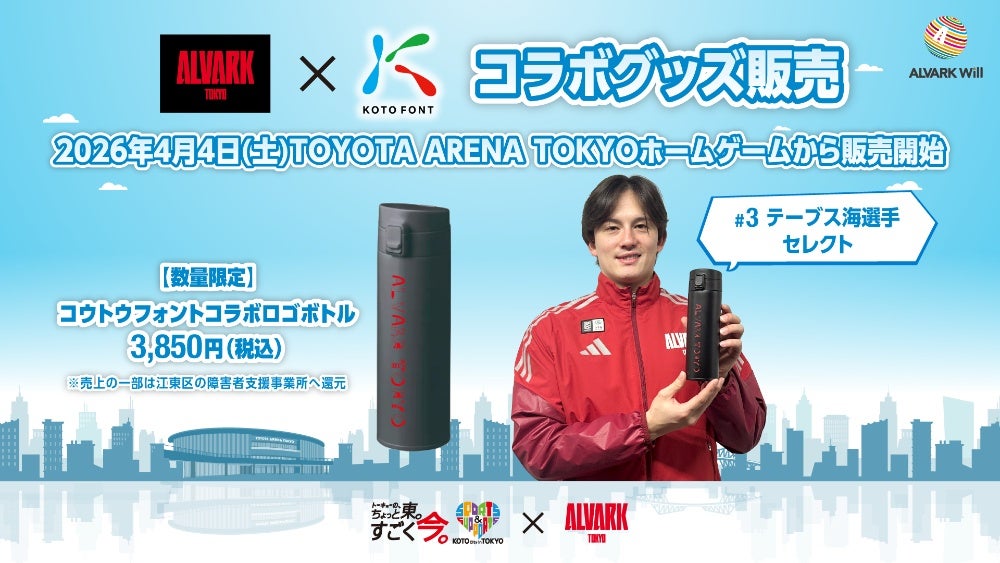 アルバルク東京では、社会的責任プロジェクト「ALVARK Will」の活動の一環として、 KOTOFONTとのコラボグッズを販売します。