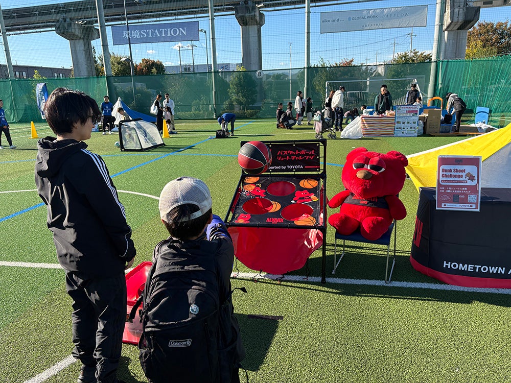 バスケットボールのシュート体験ができます。挑戦してくれた方にはオリジナルグッズをプレゼント!