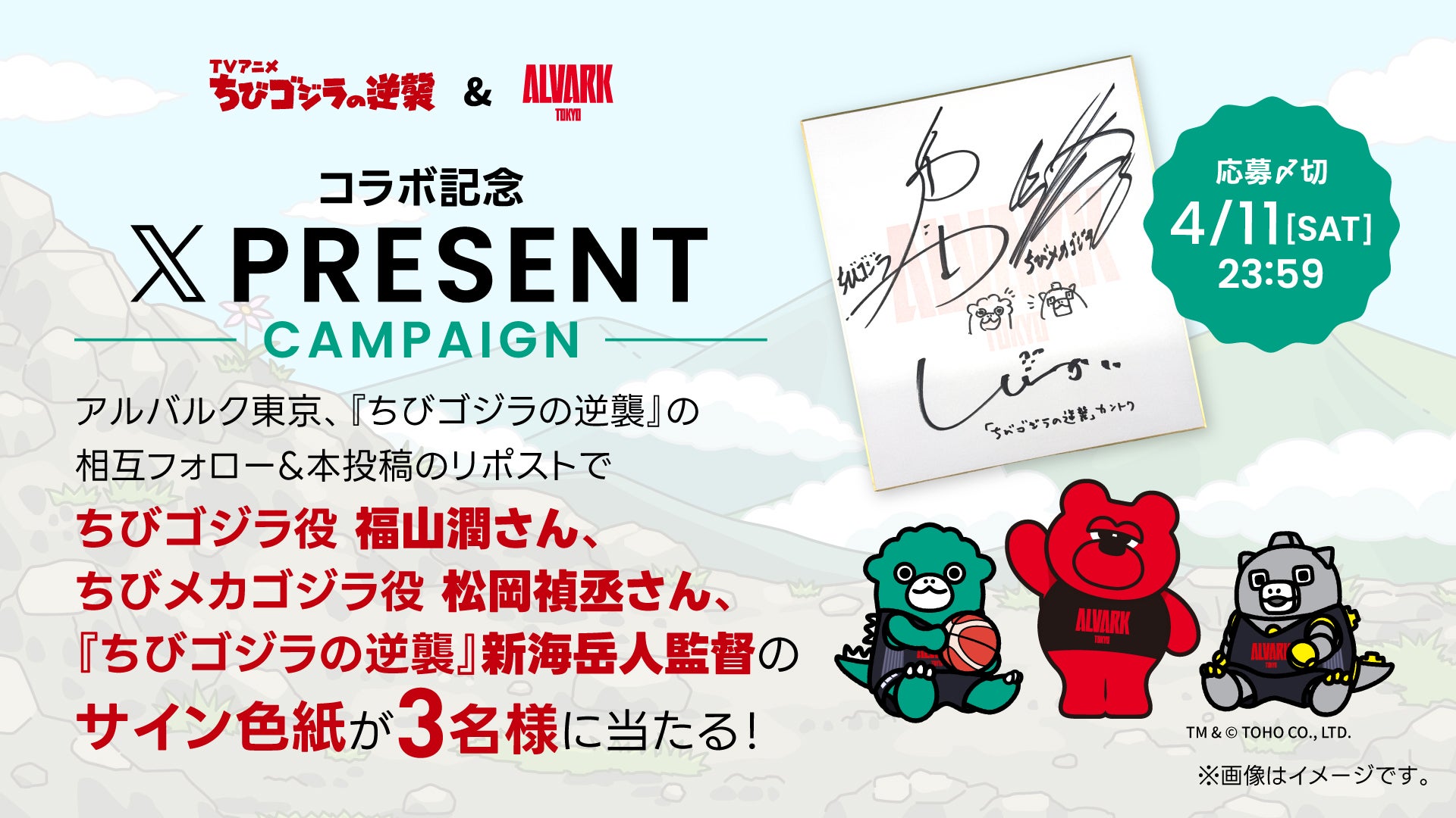 本コラボを記念し、ちびゴジラ役 福山潤さん、ちびメカゴジラ役 松岡禎丞さん、新海岳人監督の直筆サイン色紙を抽選で3名様にプレゼント。