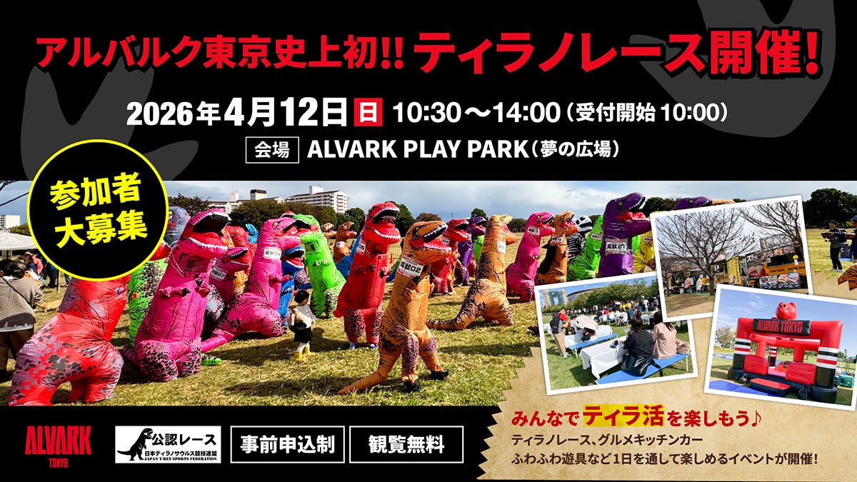 昨今、様々なメディアでも取り上げられてきたティラノレースが、一般社団法人日本ティラノサウルス競技連盟公認レースとして、アルバルク東京史上初開催が実現!
