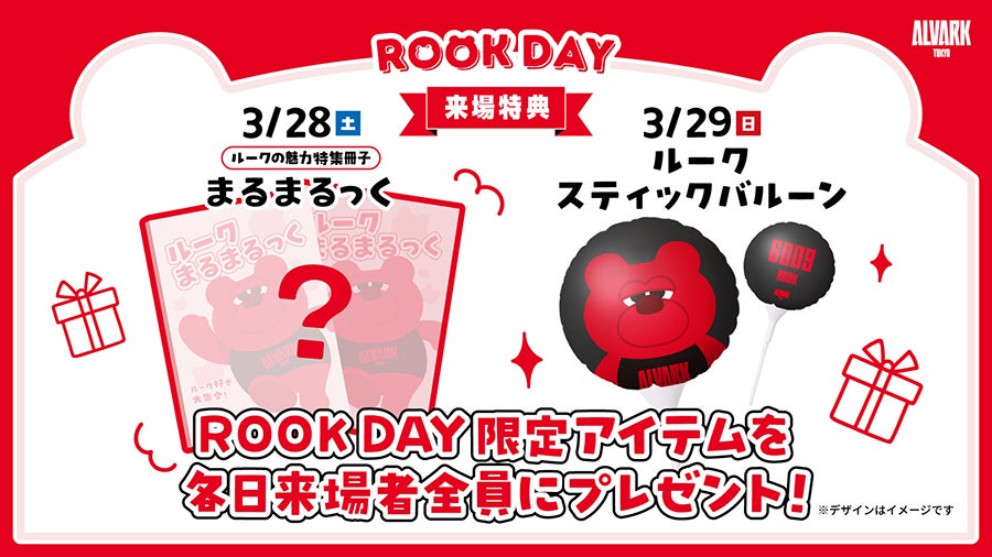 3月28日(土),29日(日)両日、ご来場いただいたお客様全員にROOKDAYを記念した限定アイテムをプレゼント!