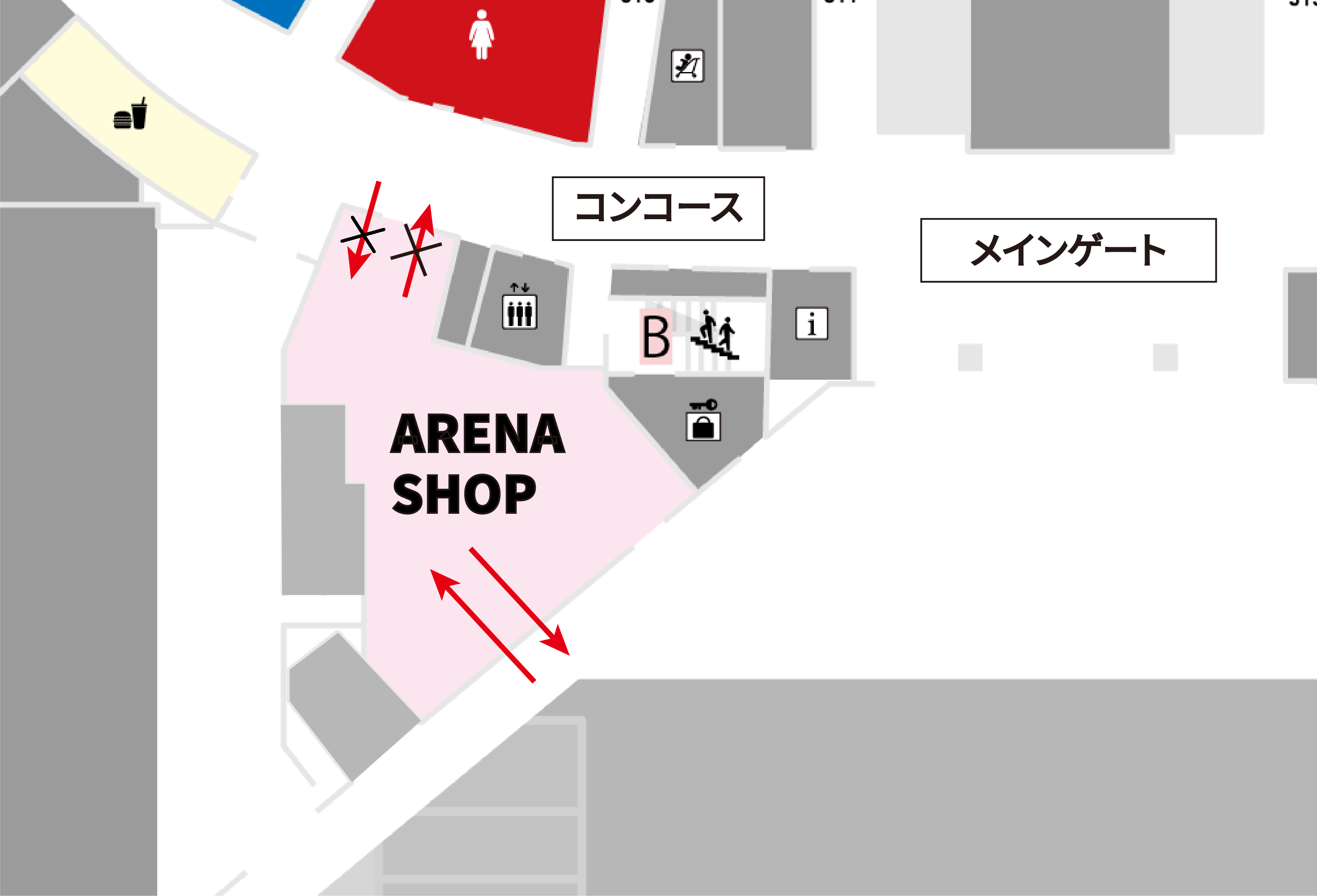 • チケットをお持ちの方はアリーナに入場後、コンコース側の入り口からも入店いただけますが、その際ショップからアリーナへ戻ることはできません。(メインゲートからの再入場となります。)
