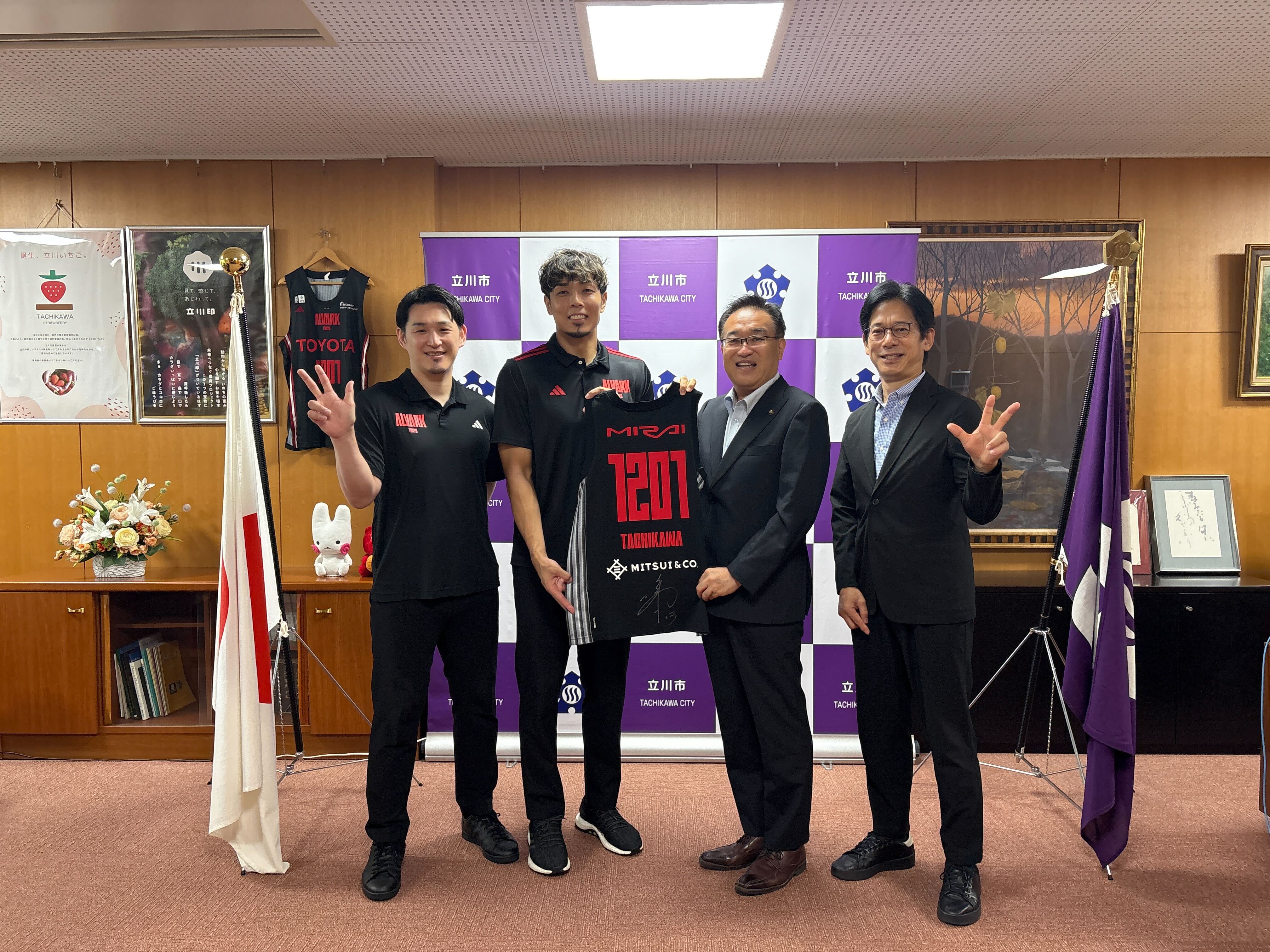 代表取締役社長 林と #13菊地 祥平選手、伊藤大司GMが、立川市の酒井市長を表敬訪問させていただきました。