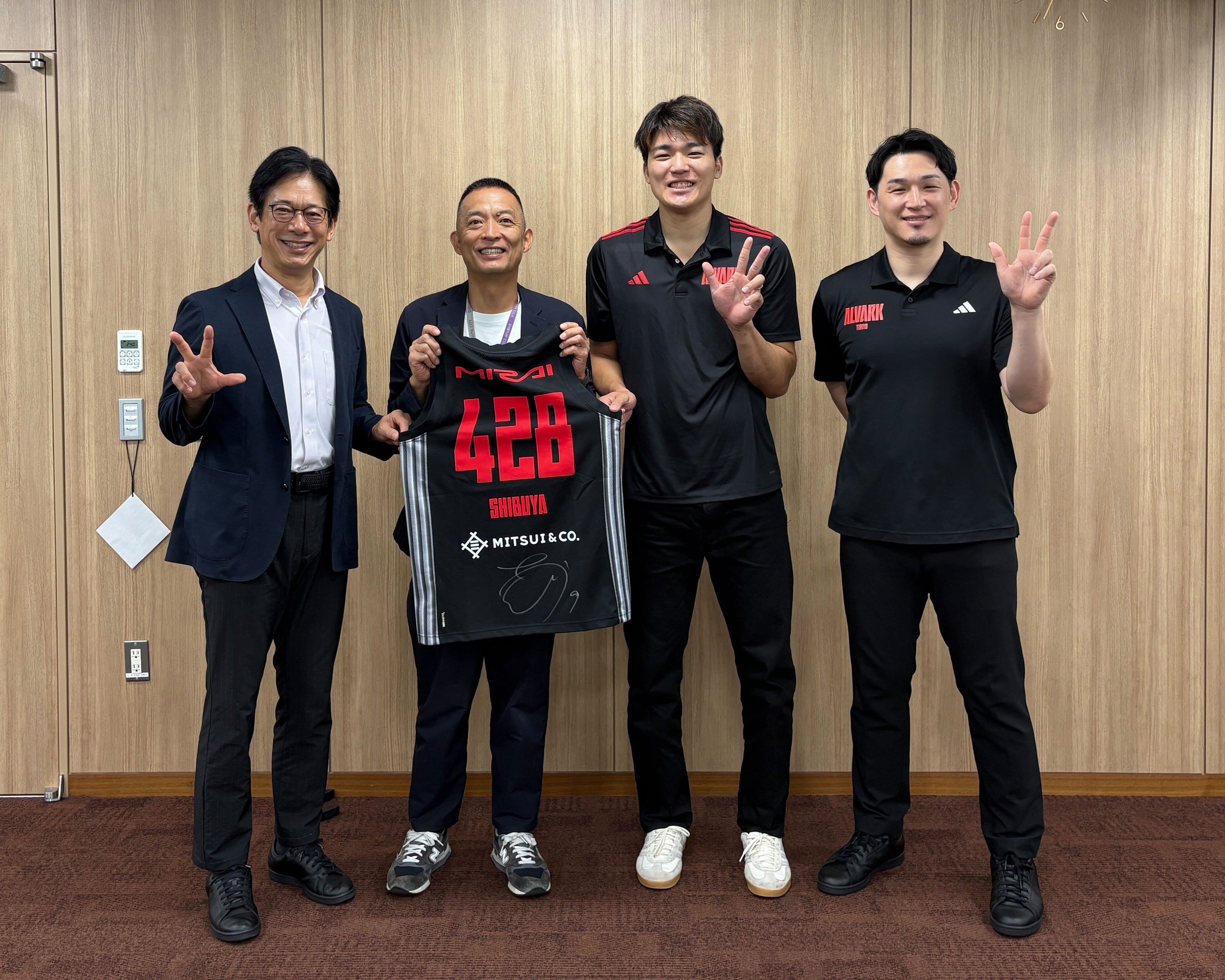 代表取締役社長 林と #9安藤 周人選手、伊藤大司GM、ルークが、渋谷区の長谷部区長を表敬訪問させていただきました。
