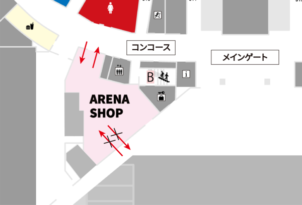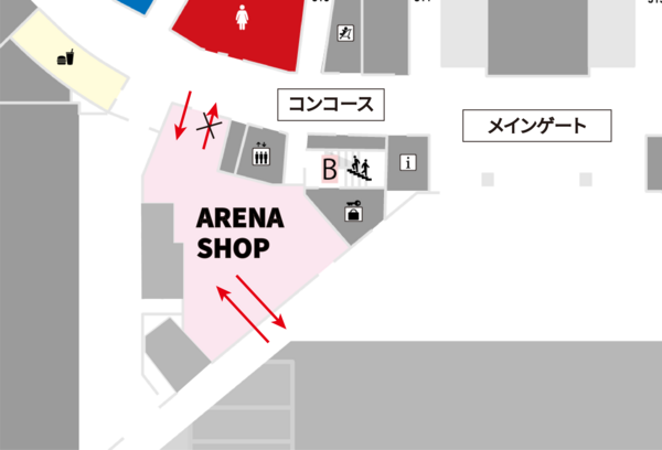 ・チケットをお持ちの方はアリーナに入場後、コンコース側の入り口からも入店いただけますが、その際ショップからアリーナへ戻ることはできません。(メインゲートからの再入場となります。)