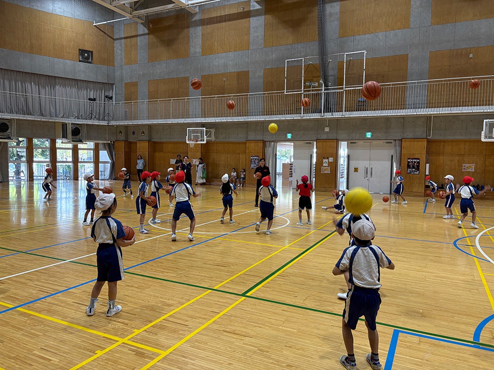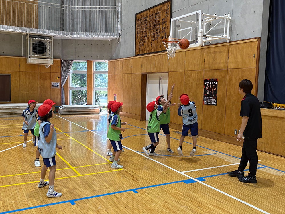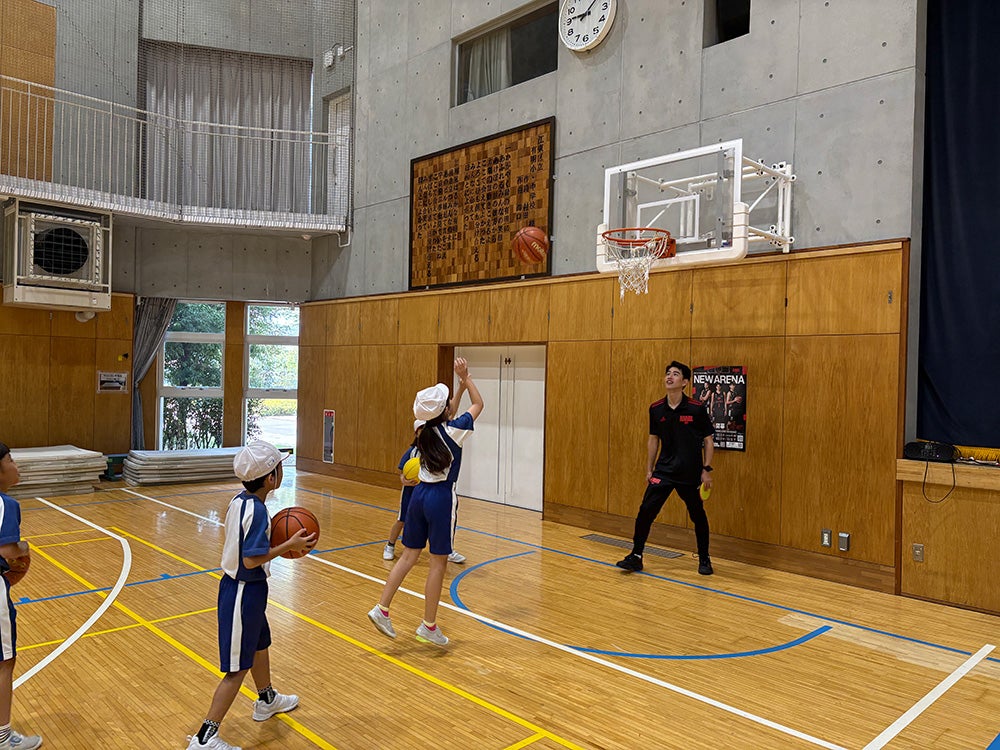 当日は、藤木 沙也香アカデミーコーチ、伊東 駿アカデミーコーチが参加し、ドリブルやシュートなどバスケットボールのスキルの練習を行いました。授業の最後には練習したスキルを使い、チームに分かれて試合も行いました。