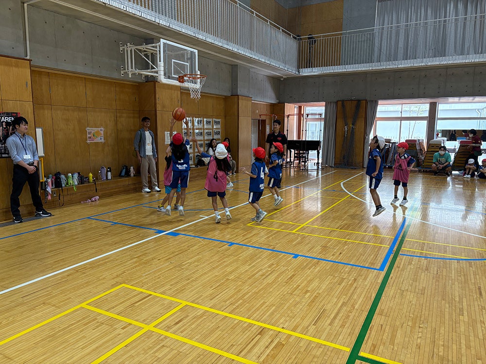 初めてバスケットボールに挑戦する児童も多くいましたが、児童の皆さんは前向きに楽しみながら授業に参加し、「楽しかった!」「もっとやりたい!」と笑顔で話してくれました。