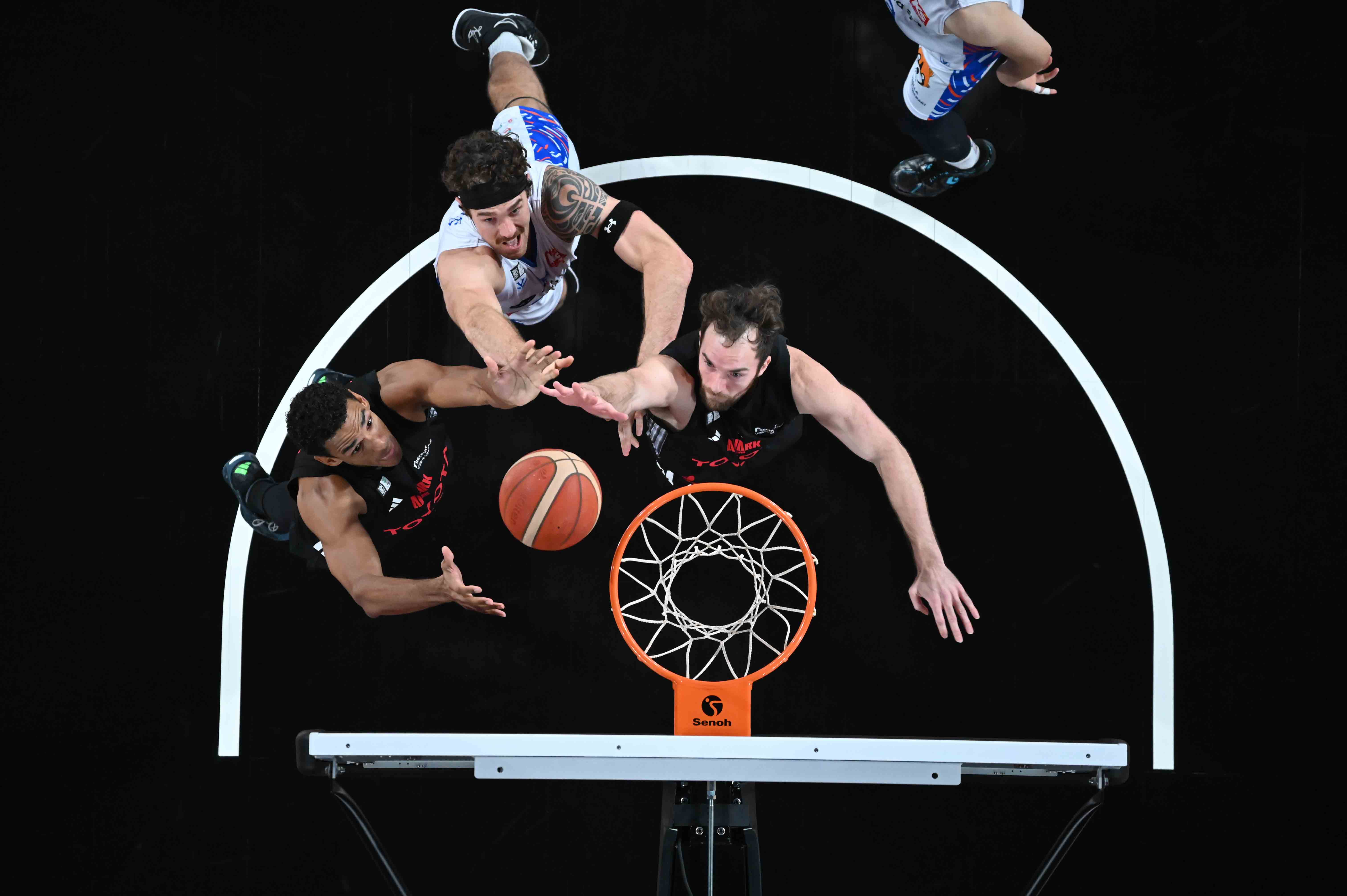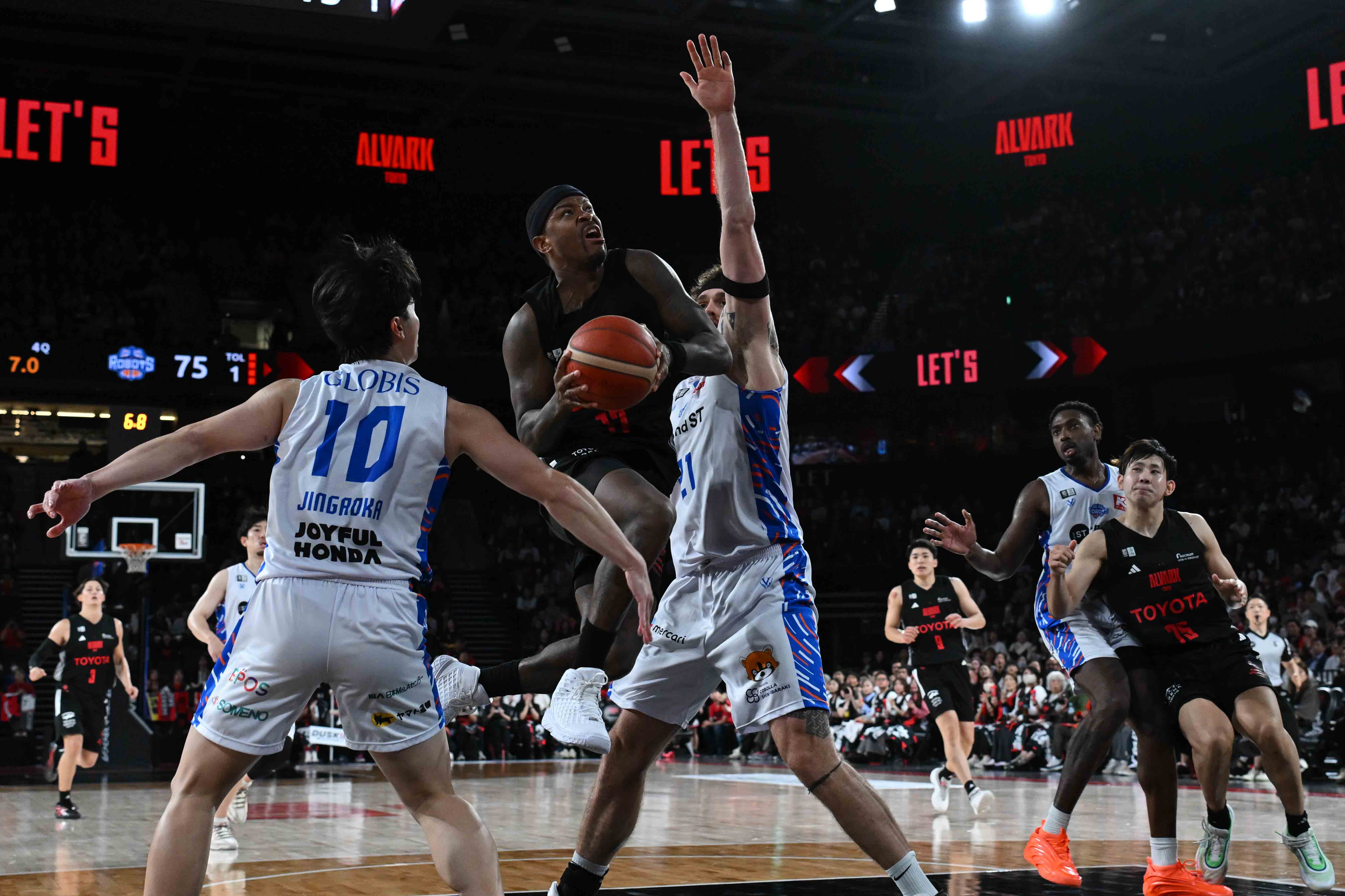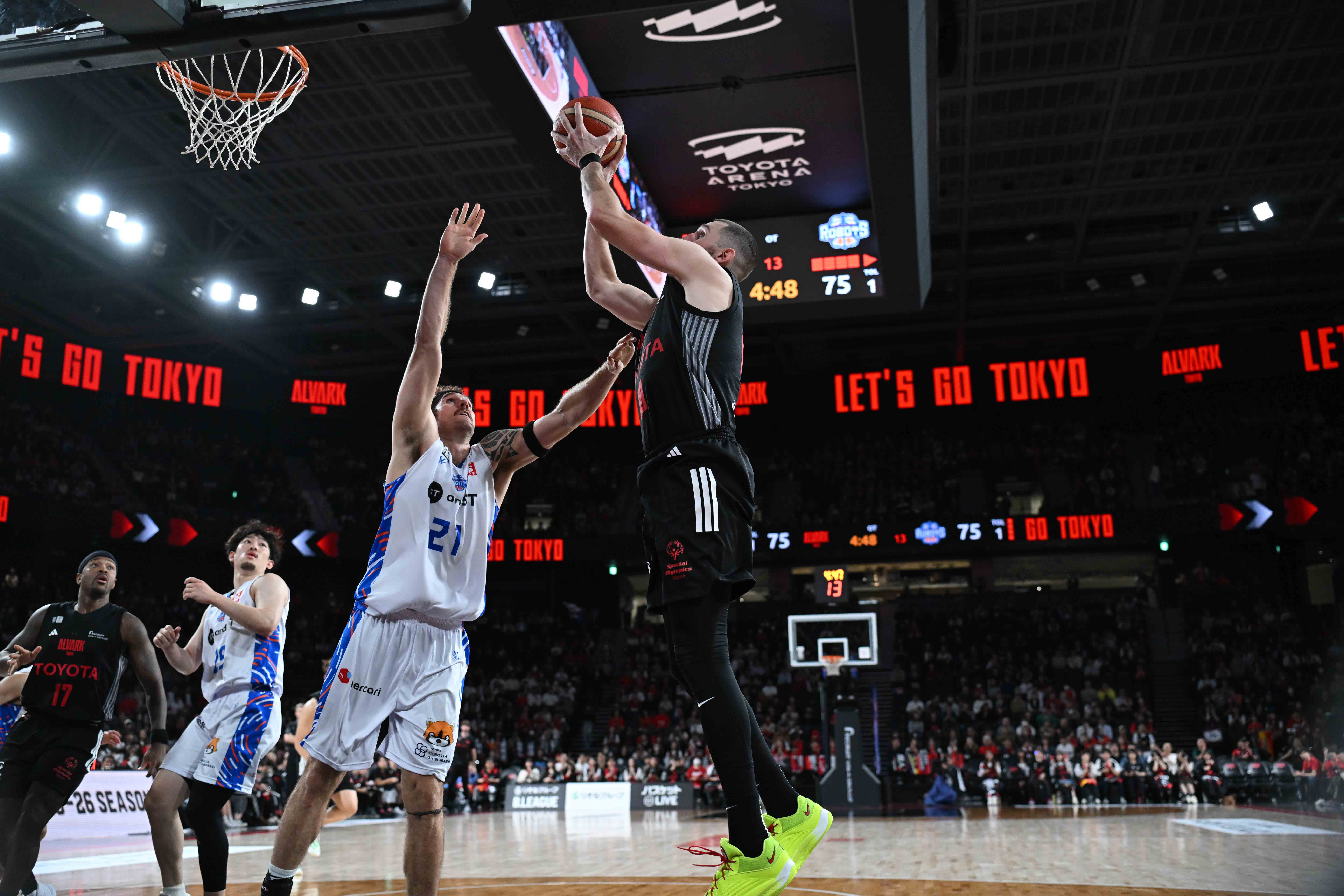スターターは、#3 テーブス、#9 安藤、#10 ザック、#11 サイズ、#75 小酒部。1Q、#3 テーブスがドライブからファウルを獲得し、フリースローで先制点を挙げる。その後は一進一退の展開が続く中、#17 フォスターが巧みなパスで相手ディフェンスを切り崩していく。両チームともファウルがかさむものの、ボールを奪うと素早いトランジションからアグレッシブにリングを狙う姿勢を見せる。終盤には、#75 小酒部の3ポイントシュートが決まり、わずかにリードを奪い、2点リードで最初のクォーターを終える。2Q、序盤からターンオーバーが続いてリズムを掴めない。相手に連続得点を許して逆転される。その後は決めれば決め返しリードチェンジを繰り返すが苦しい展開。#17 フォスターの得点で踏ん張り、#10 ザックが3ポイントを沈めて一時同点に。しかし、最後に相手の勢いを止めきれず3点を追いかけて後半戦へ。3Q、#17 フォスターが3ポイントを沈めて先制。その後もフォスターを中心に得点を重ね、#10 ザックの3ポイントで一時逆転に成功する。しかし、相手もすかさず得点を返し、一進一退の展開が続く。インサイドではファウルがかさみ、ディフェンスでの対応が難しい時間帯もあったが、#3 テーブスがスティールから速攻に持ち込むプレーで流れを引き寄せる。さらに、#75 小酒部も果敢なドライブで応戦し、チームを勢いづける。徐々にディフェンスでもリズムをつかみ始め、じわじわとリードを広げる。6点のリードで最終クォーターへ。4Q、開始早々に連続得点を許し、1ポゼッション差まで詰め寄られる苦しい展開に。それでも粘りを見せ、#11 サイズの得点で再び4点差とし、オフィシャルタイムアウトへ。その後、#2 大倉が大きな3ポイントシュートを沈めて再び流れを引き寄せる。しかし、相手も粘り強くアタックを続け、接戦が続く中、体を張ってプレーしていた#10 ザックがファウルアウトに。その後もクロスゲームは続き、残り31秒、逆転を許し、チームは苦しい状況に追い込まれる。さらに残り12秒、相手のフリースロー1本目が決まり3点ビハインド。2本目はリングに弾かれるが、それを#2 大倉がリバウンド。すぐさま#17 フォスターに繋ぐと、フォスターが勝負強さを発揮し、自ら攻め上がってバスケットカウントを獲得!フリースローも沈め、残り6秒で劇的に同点に追いつく。試合は激闘の中、オーバータイムへ突入。OT1、ファーストオフェンスで#17 フォスターから#00 スティーブへのアリウープが決まり良い流れが続く。相手にも粘られ得点を取られるも、#9 安藤の3ポイント、そしてショットクロックが迫る中#3 テーブスが気迫の1on1で3ポイントを沈める。4点をリードした残り38秒、#9 安藤と#00 スティーブのピックアンドロールからダメ押しとなる#00 スティーブのレイアップが決まり勝負あり。最後までどちらに転ぶかわからない拮抗した激戦、最後に勝負強くシュートを決め切り勝利を掴み取った。