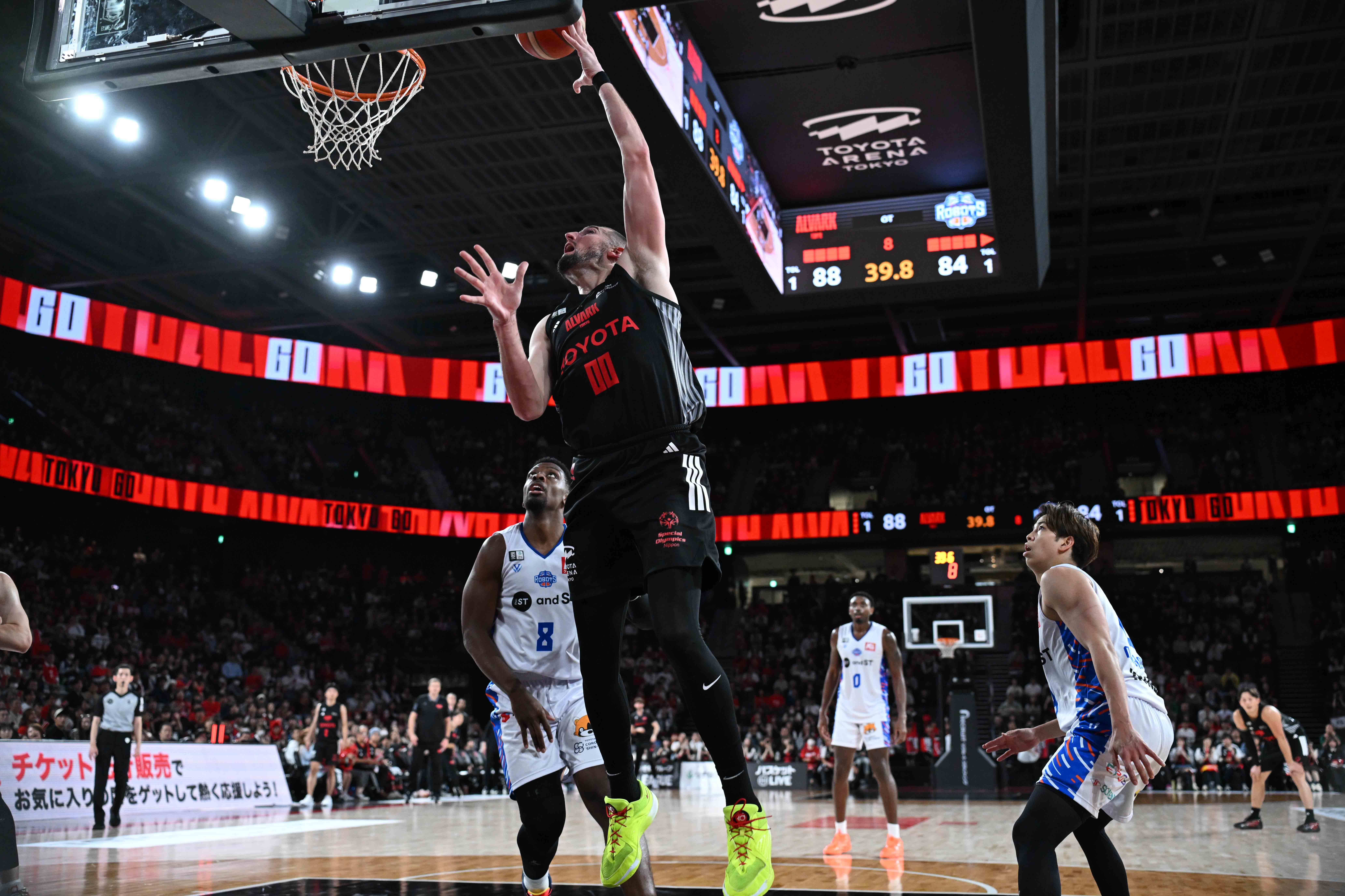 10月19日(日)に開催された茨城ロボッツ戦は、リードチェンジを繰り返す一進一退の攻防が続く激戦となり、試合最終盤で#17 フォスターが勝負強くバスケットカウントを決めて同点に追いつきオーバータイムにもつれ込む展開の中、延長でも最後まで勝負強くシュートを決め切り、勝利を掴み取りました!本日も苦しい時間も皆さまの声援が選手たちにエナジーを与えてくれました。チームは水曜に台湾でのEASLアウェーゲーム、週末には京都でのBリーグアウェーゲームとタフなスケジュールが続きますが、チーム一丸となって戦います。引き続きチームへの後押しをよろしくお願いします。