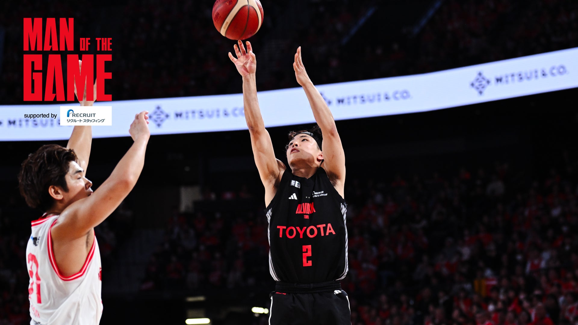 2025-26シーズンも、その試合で最も活躍した選手をアルバルク東京公式ファンクラブ「ALVARCARS」の皆さまに投票していただき決定する「MAN OF THE GAME supported by リクルートスタッフィング」を実施しています。りそなグループ B.LEAGUE 2025-26 B1リーグ戦 第7節 千葉ジェッツ戦の結果を以下の通り、お知らせいたします。