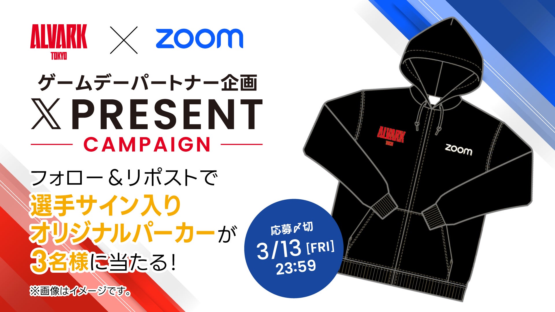 ゲームデーパートナー企画!「アルバルク東京×Zoom 選手サイン入りオリジナルパーカー」が当たるXフォロー&リポストキャンペーン