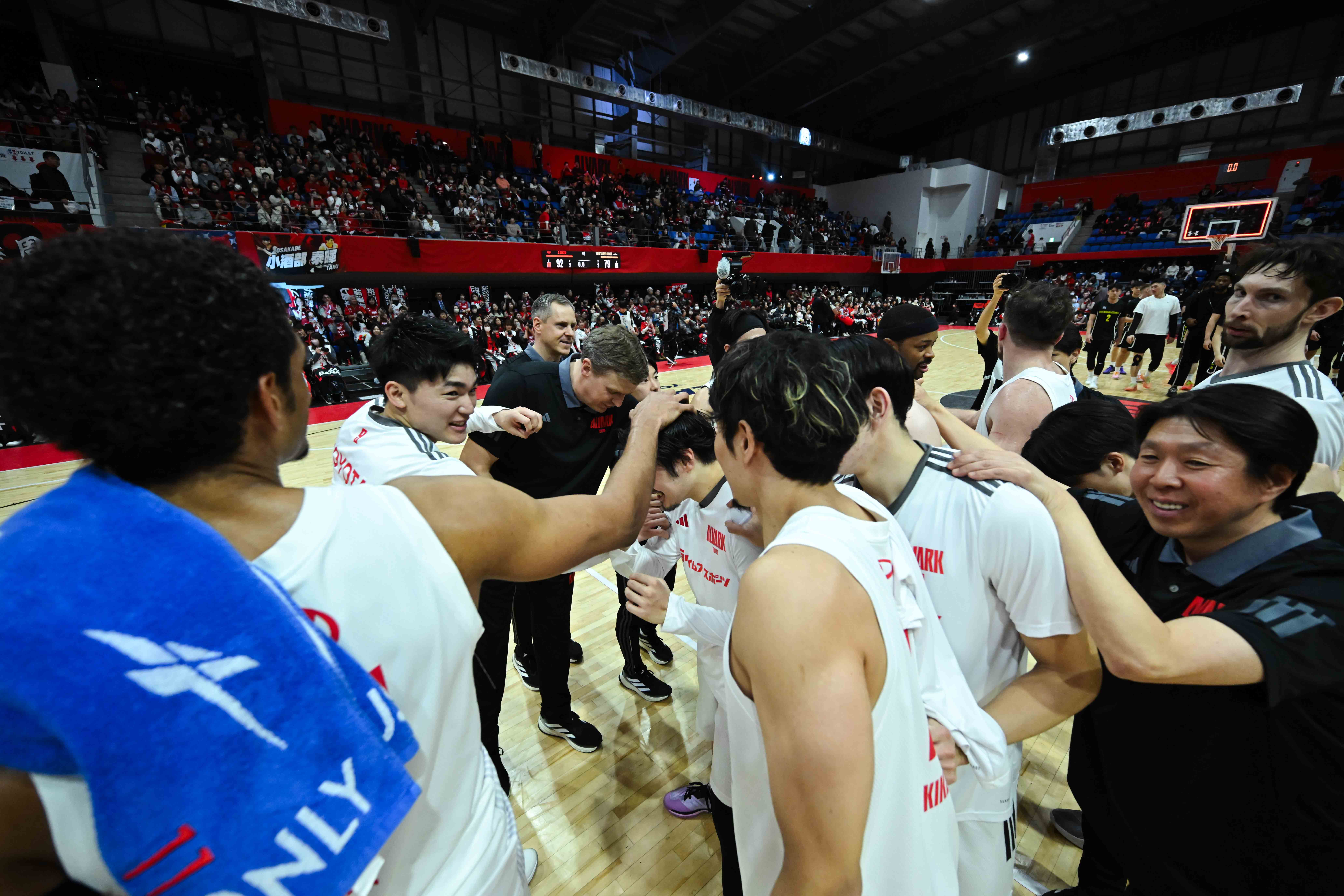 序盤は211cmの#52エリックを擁する相手のインサイドとアウトサイドに苦しみ一進一退の展開となるが、#11サイズと#2大倉の得点で流れを引き寄せる。前半終盤に追い上げを許すもリードを保って折り返すと、後半は#22ロシターの連続得点や#5中村の3ポイントで主導権を掌握。4Qも#2大倉がこの日4本目の3ポイントを沈めるなど攻撃の手を緩めず、30得点で突き放した。19点差の快勝で連勝を飾り、グループC首位に立った。