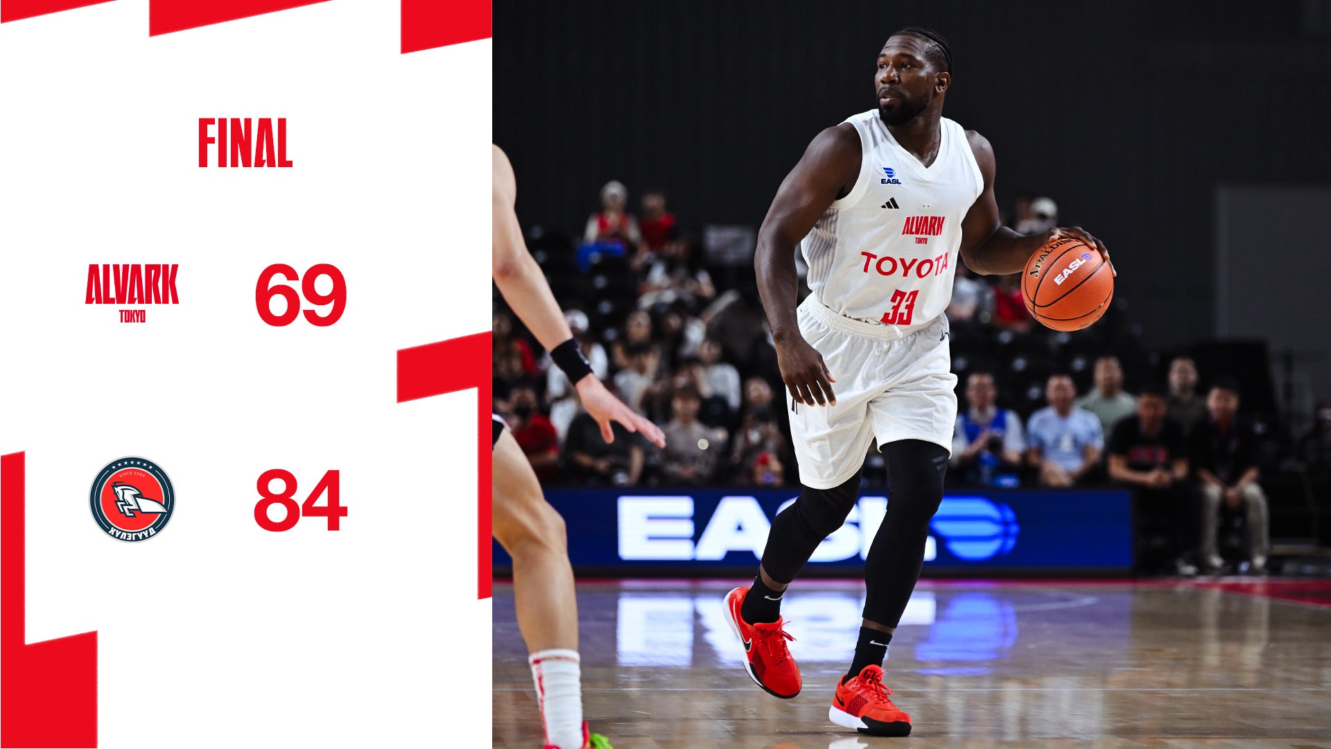 10月8日(水)に開催されたEASL開幕戦 ザック・ブロンコス戦は、ロスター10名で戦う中でも一時は9点リードする場面もありましたが、試合を通して流れを捉えきれず、試合終盤で相手に連続得点を許して突き放され悔しい敗戦となりました。この試合も会場に足を運んでいただいた皆さま、配信から応援いただいた皆さまありがとうございました。チームは今週末、Bリーグレギュラーシーズンの戦い、アウェーでの琉球ゴールデンキングス戦となります。厳しいスケジュールが続きますが、前を向いて戦います。チームへの後押し、よろしくお願いします。