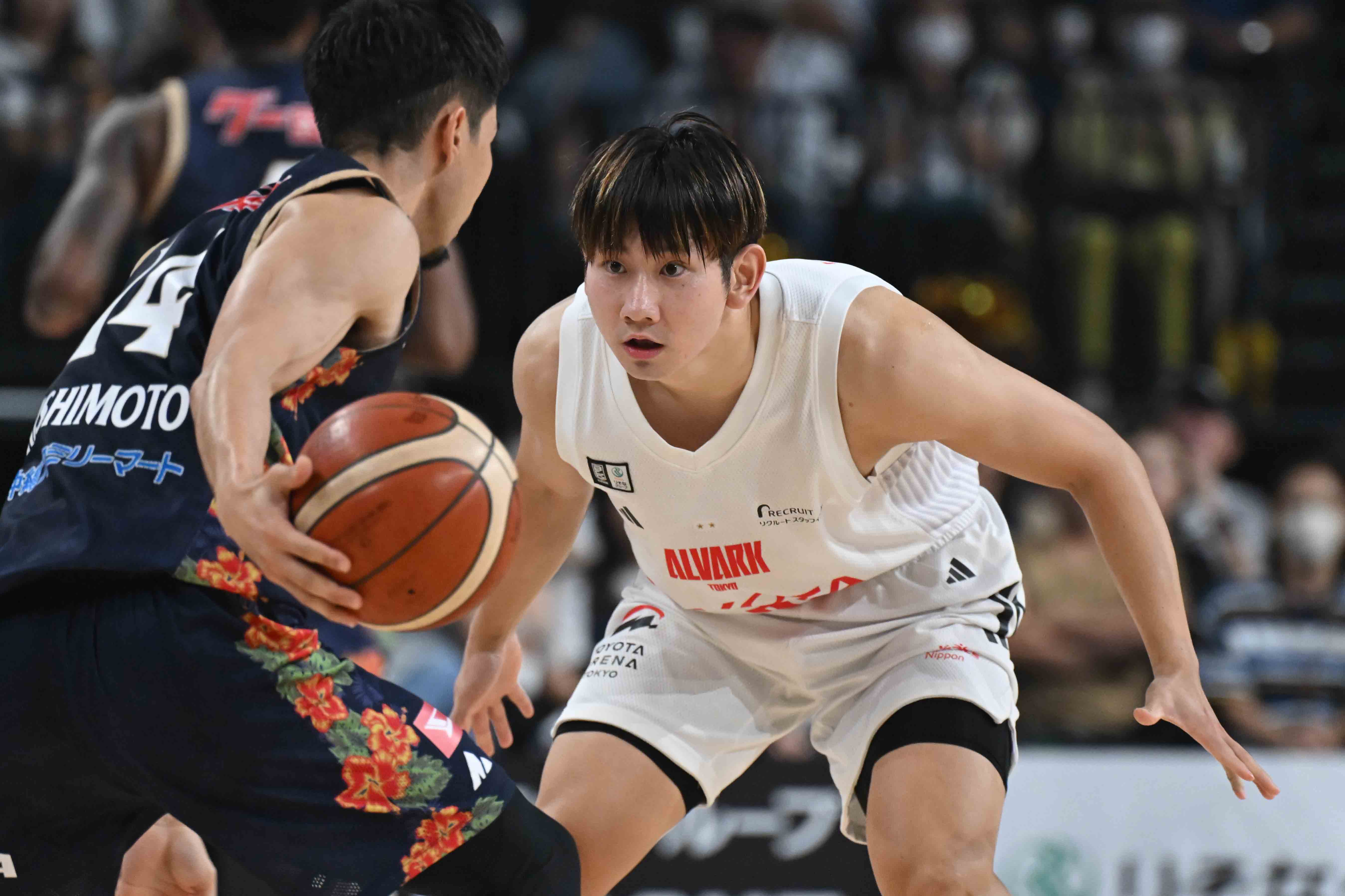 (今日も試合開始最初のディフェンスからスティールを狙って、その気持ちの部分でもリードしてくれているように感じましたが? )ディフェンスの部分で自分がリーダーシップとって、トーンセットというか、自分がプレッシャー与えている姿で仲間たちに刺激を与えるというか、そこのトーンセットできればなというふうに心がけてやっているところです。今、オフェンス重視になってしまっていて、やっぱアルバルク東京って堅いディフェンスから入るっていうのは、その年々やってきてるところだと思うから、オフェンスはフリーランスになってるっていうことはもっと磨かないといけないと思うけど、やっぱりディフェンスうまくいかないと、それに繋がらない。まずはディフェンスで締めて、気持ちよく自分たちのオフェンスができるっていうかそこに繋がるのかなっていうふうに思ってます。