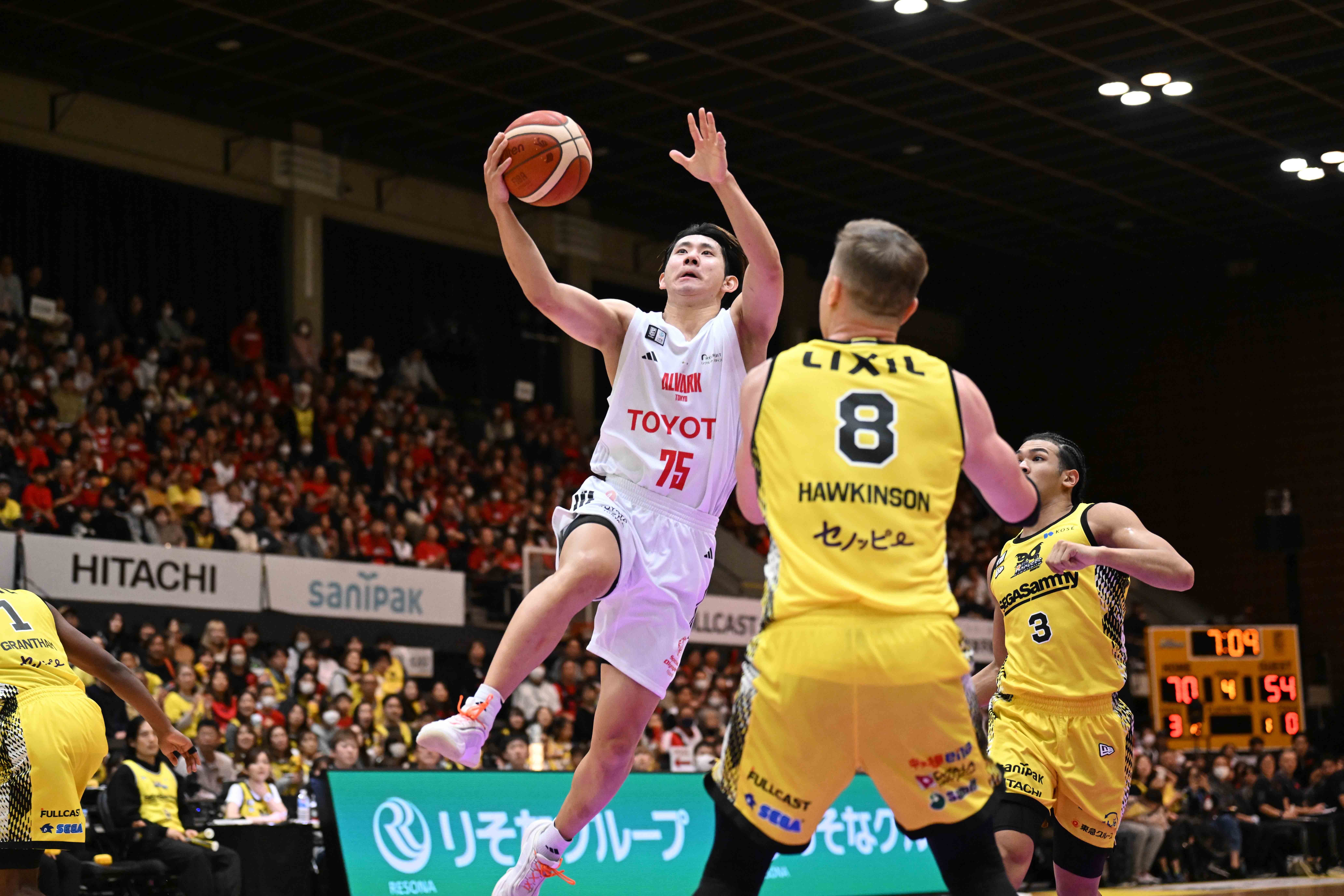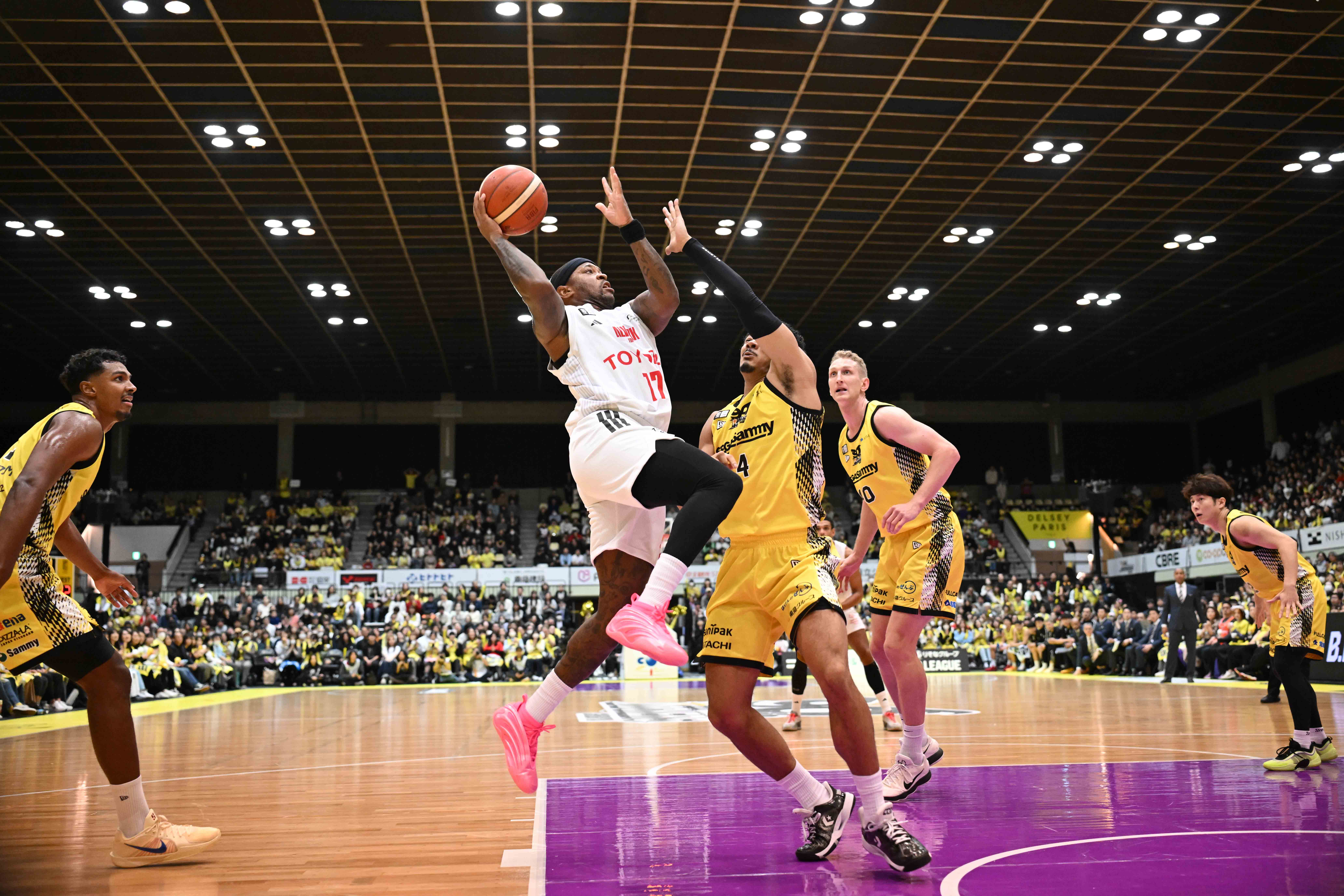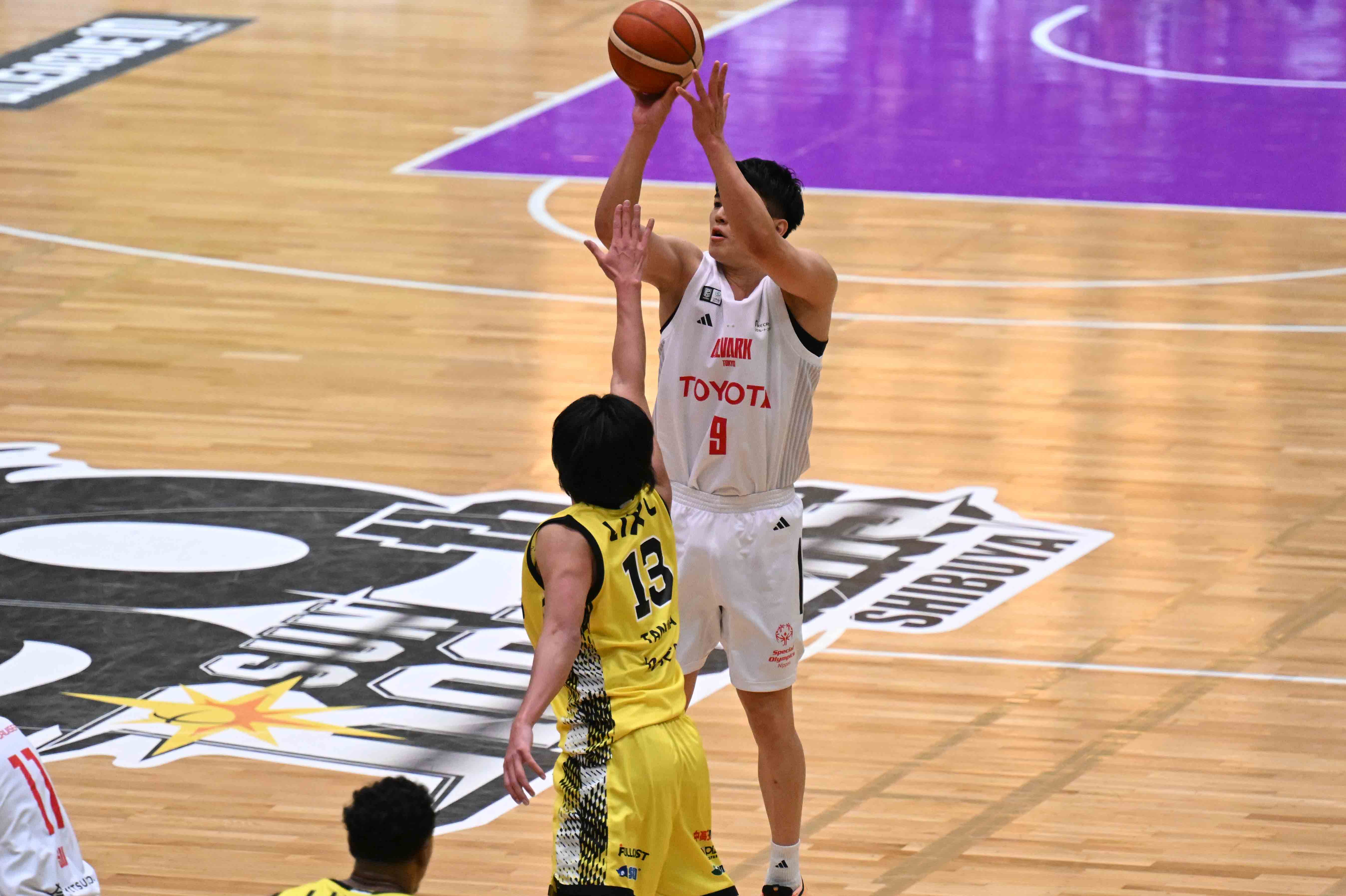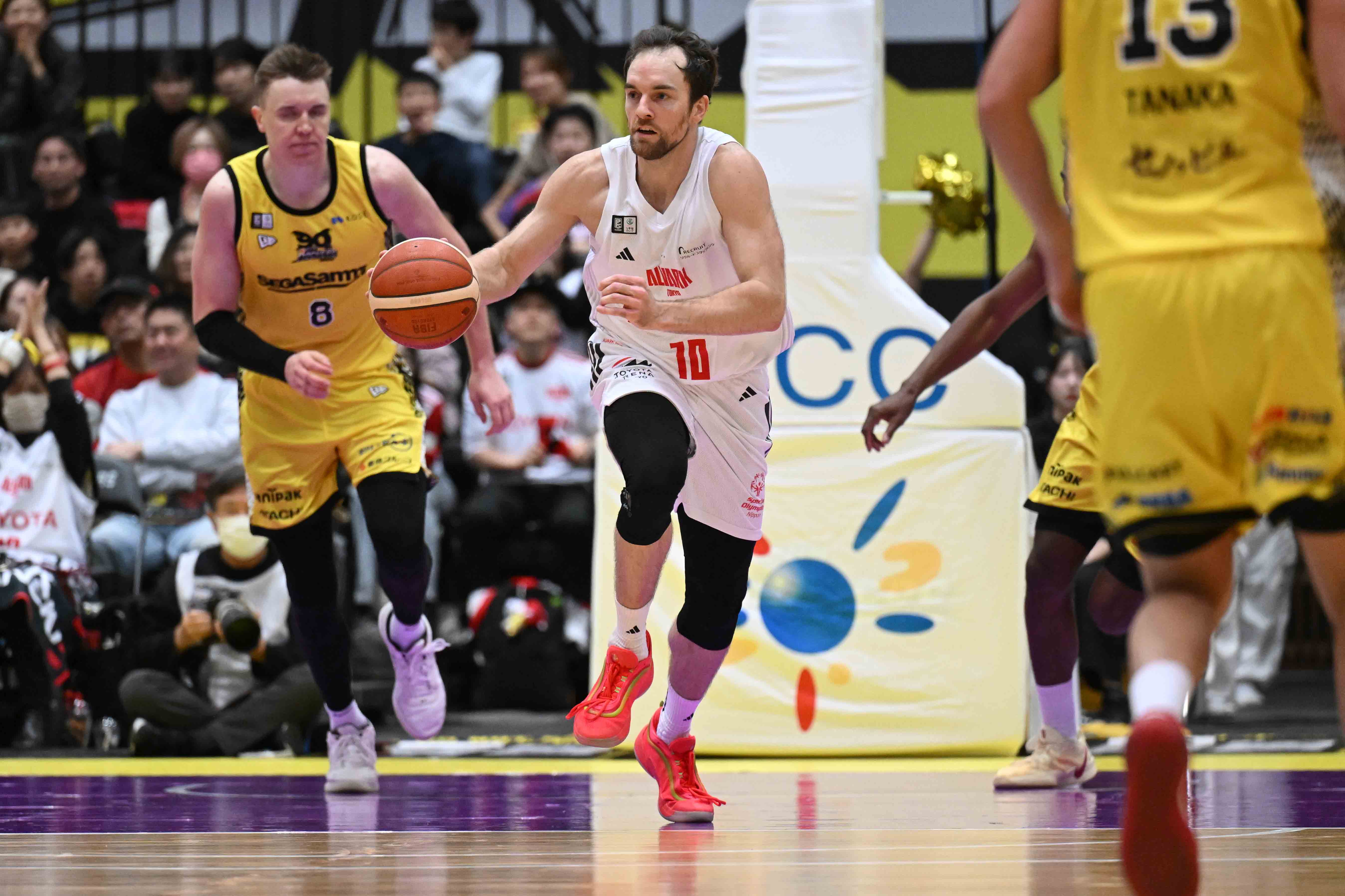 スターターは、#2 大倉、#9 安藤、#11 サイズ、#22 ロシター、#75 小酒部。1Q、開始早々にバスケットカウントを許し先制される。その後はディフェンスで粘りを見せるものの、相手にアップテンポな展開を許し、#9 ベンドラメの4点プレーなどを決められる一方で、オフェンスでは相手ディフェンスにも苦戦してリングに嫌われ、停滞したムードが続く。しかし終盤、#25 福澤がトランジションからコーナースリーを沈めると、#17 フォスターも続き、5点ビハインドに食い止めて最初のクォーターを終える。2Q、リズムを掴めない中、オフェンスリバウンドに果敢に絡み徐々に流れを引き寄せる。#5 中村がうまさが光るドライブから自ら持ち込みバスケットカウント、#22 ロシターのバスケットカウントも続き、1点差に詰め寄る。しかし、まさに流れの奪い合い。ここから再び相手に主導権を握られて一挙に0-11のランを許して再び離される。#22 ロシター、#17 フォスターの3ポイントで何とか食らいつくが、9点のビハインドで後半へ。3Q、立ち上がりから#9 安藤が先制点となった3ポイントに続きドライブで躍動。#22 ロシターも3ポイントを沈めるなど一気に流れに乗って7:30で逆転に成功するが、そこから再び相手が盛り返してディフェンスで勢いを止められない。連続得点を許して再び二桁ビハインド、16点差で最終クォーターへ。4Q、#75 小酒部が#11 サイズに繋いで先制するが、相手も決め返す。#9 安藤も気を吐きスコアするが、相手にも連続で3ポイントを許すなど点差を縮めることはできず、17点差での完敗となった。