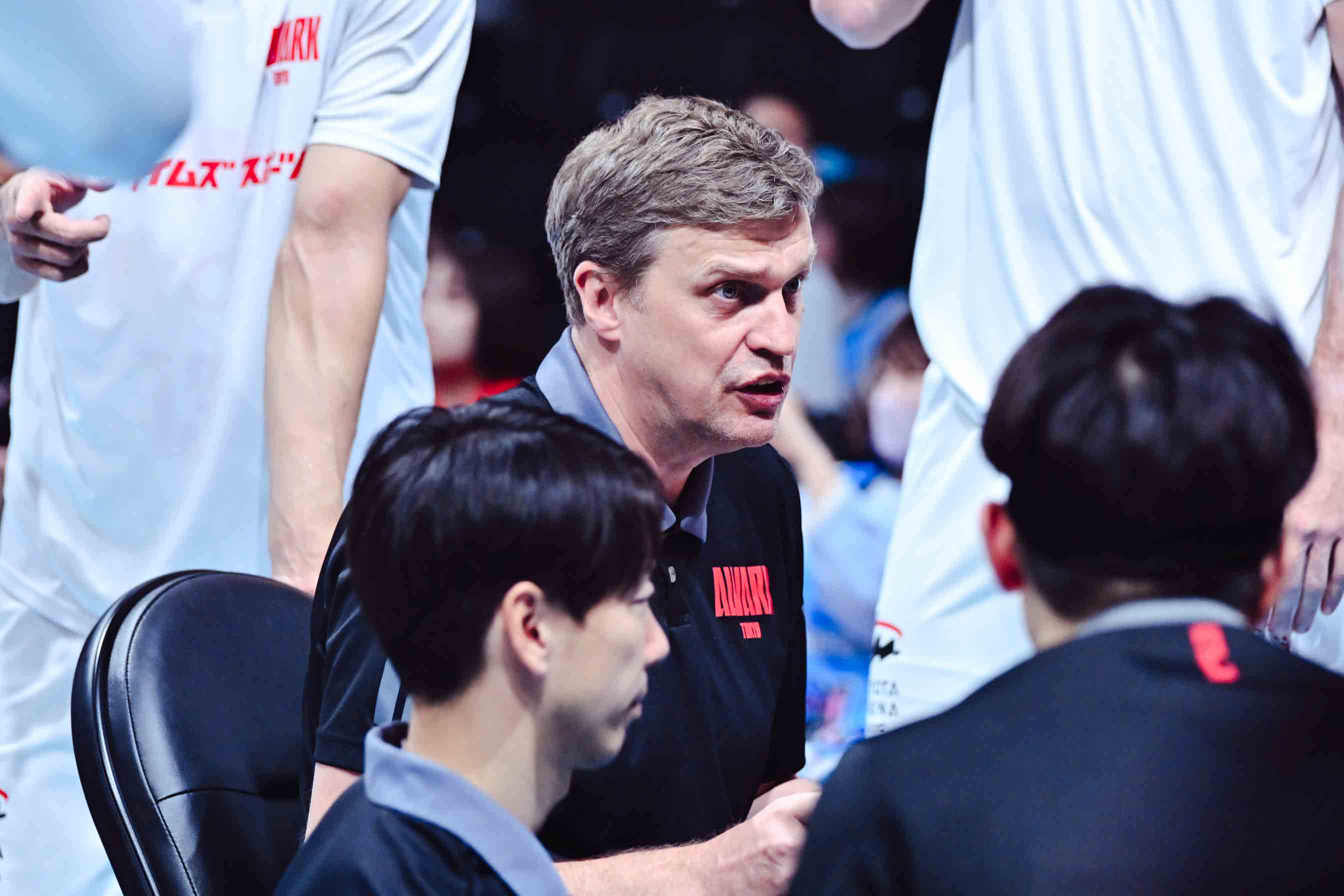 今日の試合については2つストーリーがあると思っています。最初の30分間はすごくアグレッシブにプレーできていましたし、ボールムーブメントも、ポジションを正しく取るという部分も良かったと思います。ただ昨日と同じでターンオーバーがやはり我々にとってはかなり課題となった、難しかった試合でした。相手のプレッシャーをシンプルにハンドルできなかった。最初の30分でもターンオーバーはありましたが、それでも10点勝っていました。ただそこから0-15のランを作られてしまい。その状況でファウルもできませんでしたし、ターンオーバーをして相手が3ポイントを決める。もうこれの繰り返しになってしまいました。ターンオーバーをしてからのスコアで31失点、セカンドチャンスのところが14失点。セカンドチャンスのところは7個のオフェンスリバウンドで14点取られていますので、PPP(Points Per Possession)が2。これはすごく高い数字です。やはりこういうスコアを許してしまうと、試合に勝つことはなかなか難しくなってしまうと思っています。ディフェンスのところは昨日と同じで少しシステムのところをミックスしてやったのですが、3ポイントの決められ方が我々としては難しかったと思っています。最初は我々のディフェンスのコミュニケーションのミスがすごく多かった、バッドコミュニケーションが多かったと思います。そこで(相手を)あけてしまって決められる。もしくはターンオーバーになってしまいそのまま決められる。それは金丸選手のところでもコミュニケーションが悪くて決められてしまい、こちらがターンオーバーをしてしまって、また金丸選手に決められてしまう。そういうところでなかなかチームでディフェンスすることは難しいです。さっきも言いましたけれどもターンオーバーがそのまま直接我々の失点に繋がってしまう、いわゆるイージーポイント簡単なスコアが決められてしまい、相手の連続スコアに繋げてしまいました。