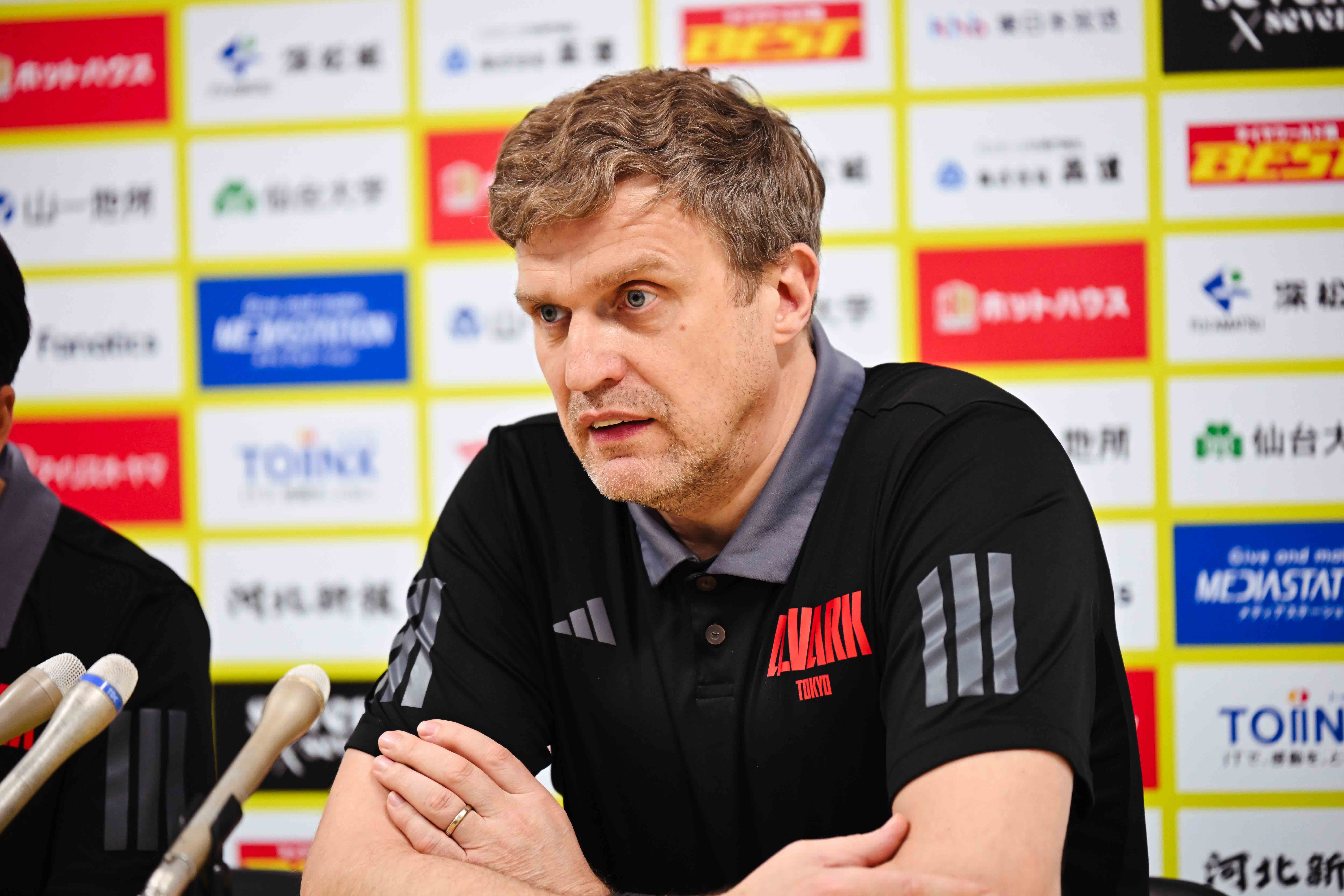 今は自分たちにとって非常に厳しい状況です。7連敗中で、Bリーグでも5連敗していて、本当に苦しいです。チームについて多くのことを見つめ直している最中ですが、前に進み続けるしかありません。目標はまだ達成可能な位置にあるので、最後の数試合に向けて、チームとして団結し、より良くなる方法を見つけていく必要があります。今のように厳しい状況だからこそ、各自が自分自身と向き合い、「チームのために何ができるか」を考えて、より良くなっていくことが大切です。シーズンの終盤でベストな状態に持っていきたいです。ライアンが欠場しているのは理想的な状況ではありませんが、それでも自分たちは勝つ力があると思っています。次戦の秋田とはすでに2回対戦しています。これまでは良い結果も出ていますが、今はまずディフェンスの遂行力を高めることが必要です。そこから改善していくべきだと思います。ディフェンスを良くすれば、オフェンスは自然とついてくるはずです。相手の成績だけで侮ることなく、しっかり準備して試合に臨み、連勝の流れをつかまなければいけません。今日もたくさんのサポートありがとうございました。