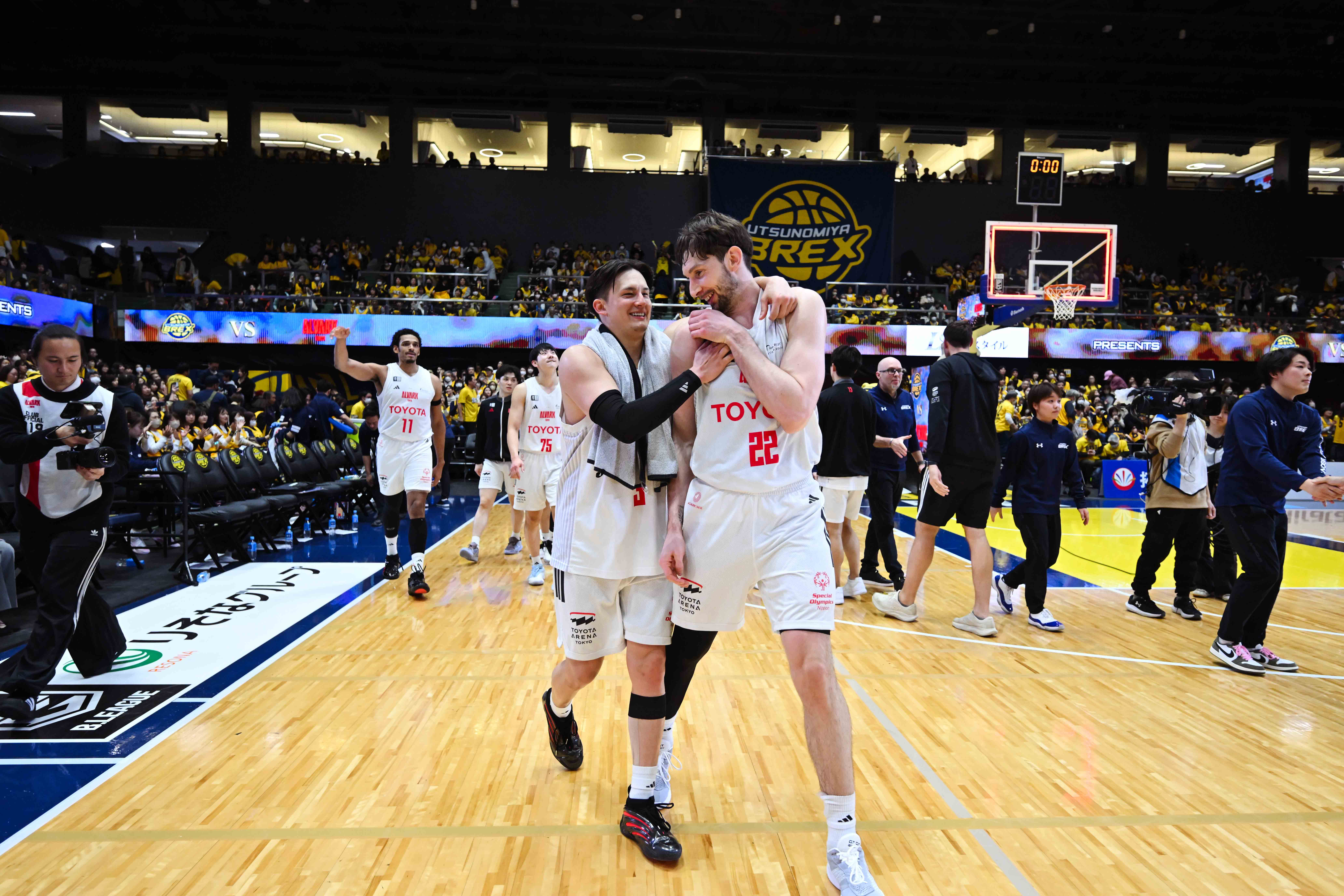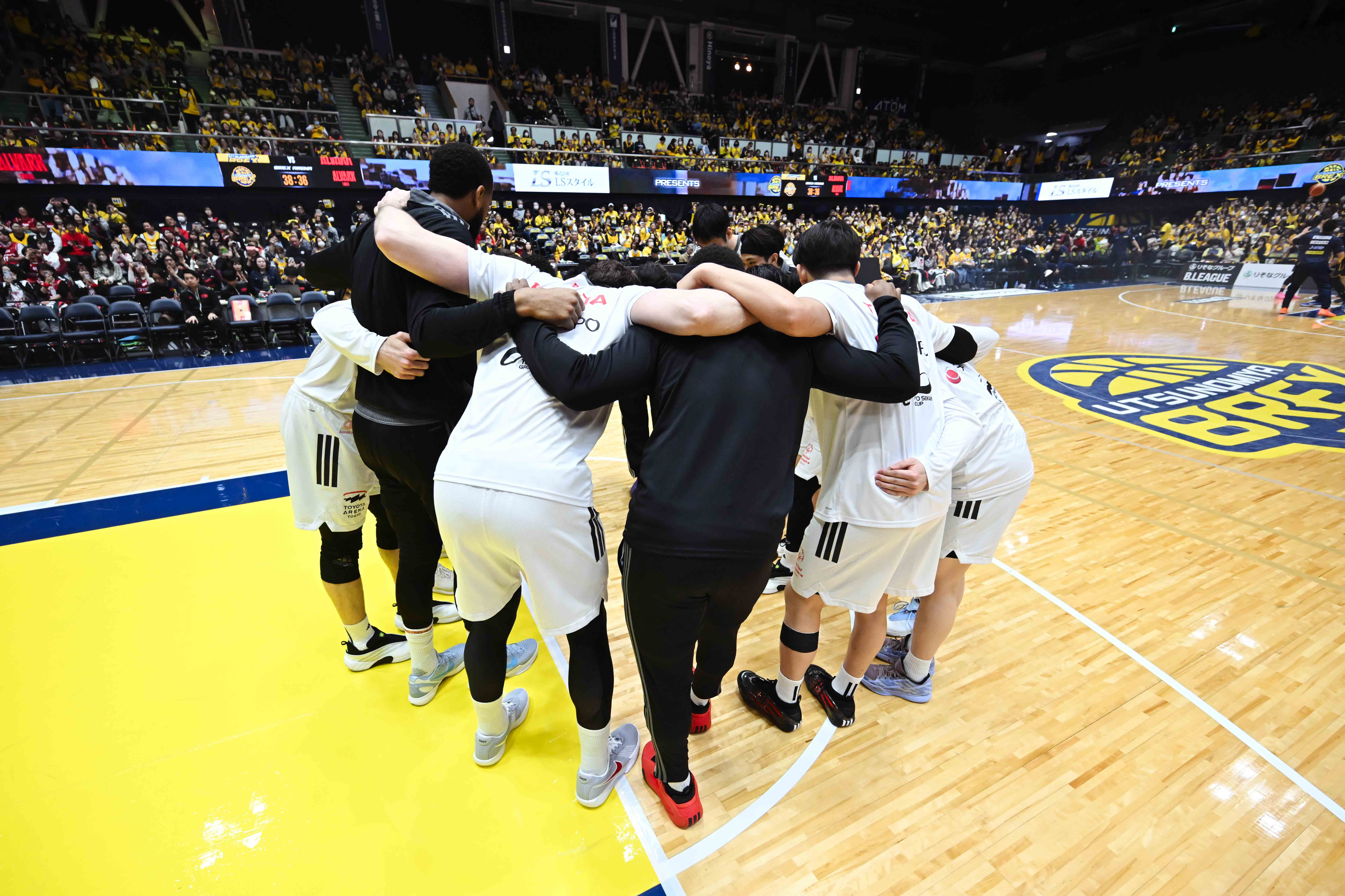 4月8日(水)に開催された宇都宮ブレックス戦は、まさに両者の気迫がぶつかり合うポストシーズンさながらの激戦となりました。後半に逆転を許し、苦しい時間もありましたが、激しいリードチェンジの連続の末に同点で迎えた残り0.4秒、この日が復帰戦となった#22 ロシター選手の値千金の勝利弾で劇的な勝利を掴みました。 真っ黄色に染まる超満員のアウェー会場の中でも、喉を枯らして声を張り上げ一緒に戦ってくださった皆さん。配信を通じて画面の向こうから力強く念を送ってくださった皆さん。そして、苦しい連敗の時期にも、下を向かずに戦おうと熱く鼓舞してくださった皆さん。一人ひとりの想いが確かに選手に届き、チームは皆さんとともに前に進んでいます。この勝利も、間違いなく全員で掴んだ勝利です。