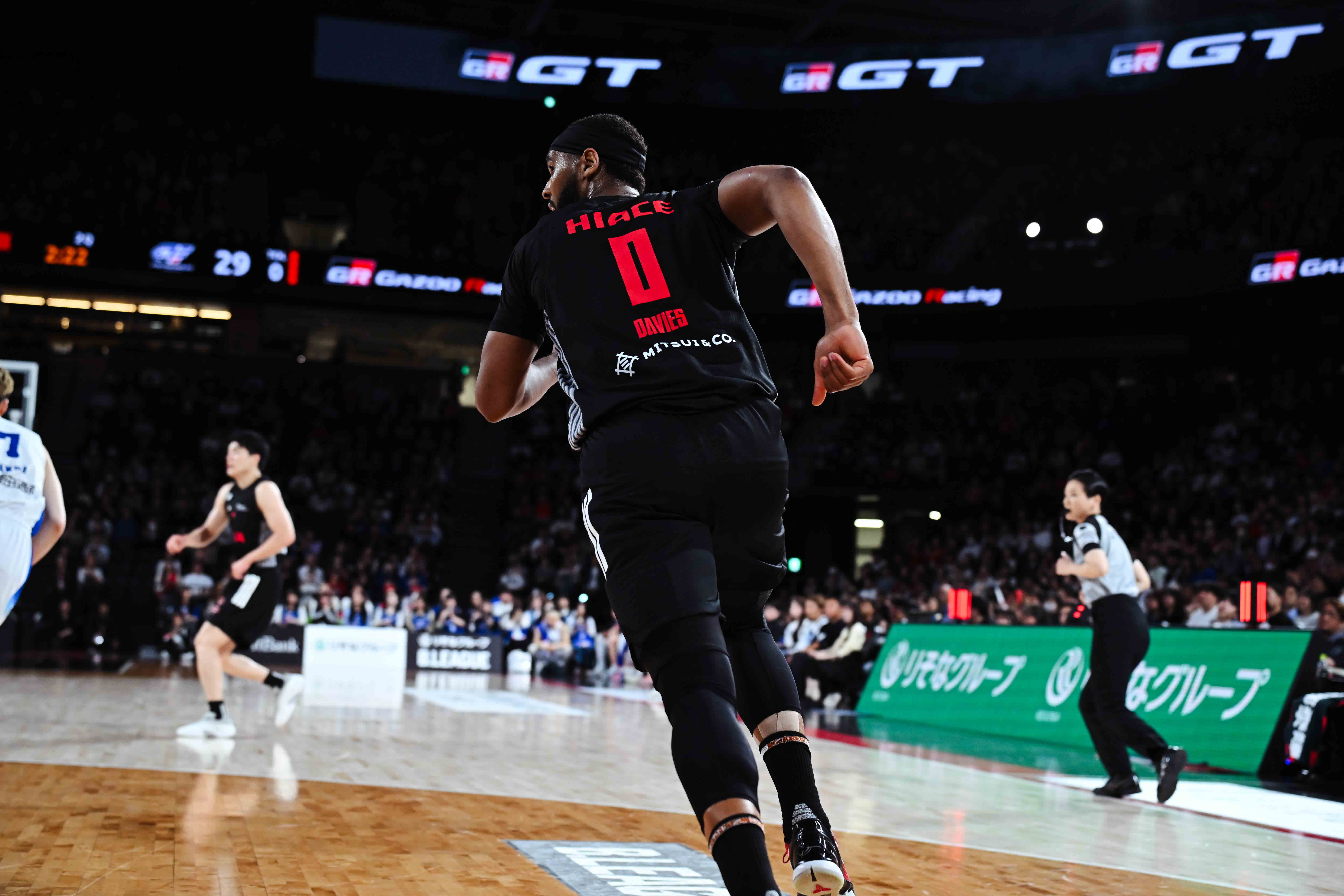 スターターは、#3 テーブス、#10 ザック、#11 サイズ、#22 ロシター、#75 小酒部。1Q、序盤から#11 サイズにしっかりボールを供給し、次々と得点を重ねて5分を経過して17-5と主導権を握る。しかしそこからターンオーバーなども続き波に乗り切れない。終盤には0-8のランを許すなど3点差まで詰め寄られる。#11 サイズのセカンドチャンスポイントなどで6点差として最初のクォーターを終える。2Q、オフェンスでもリズムを掴めずスティールを狙われる。#22 ロシターの3ポイント、ショットクロックぎりぎりでの#5 中村のアタック、#10 ザックの抜群の読みからのスティールなど連続得点、14点差までリードを広げる。しかし、今日もこの点差から突き放せない。速攻を許して11点差とされたところでタイムアウト。#0 デイヴィスのブロックやスコアなど13点差として前半を折り返す。3Q、#11 サイズのバスケットカウントで先制するが、ディフェンスでもストップできず、残り5分を切ったところで強烈なダンクを許して7点差まで詰め寄られる。#9 安藤がコーナースリーやドライブを決めるなど、再び二桁点差とする。相手のゾーンディフェンスに対しても#9 安藤がしっかりスリーを決める。さらに#3 テーブスの3ポイントも決まり、17点リードとして最終クォーターへ。 4Q、#3 テーブスのフローターで先制すると、ディフェンスリバウンドから#3 テーブスそして#5 中村へとプッシュし、コーナーの#9 安藤へ。美しい軌道で3本目のスリーが決まり、リードを20点台に乗せる。#21 平岩もスコアしてチームを盛り立て、迎えた残り3:25。先日引退を表明した#13 菊地がコートイン。ひときわ大きな歓声が上がる。インサイドでボールを受け、力強いターンと小気味よいステップで相手を抑えてシュートを狙った#13 菊地のショットを、#21 平岩が押し込む。続いて#21 平岩がミスマッチを突いて相手を押し込みバスケットカウント。最後の最後までチームの勢いを絶やさない、そんな気持ちが感じられるコート上の選手たちのプレーに、観客席の応援の熱もまた、衰えることはなかった。