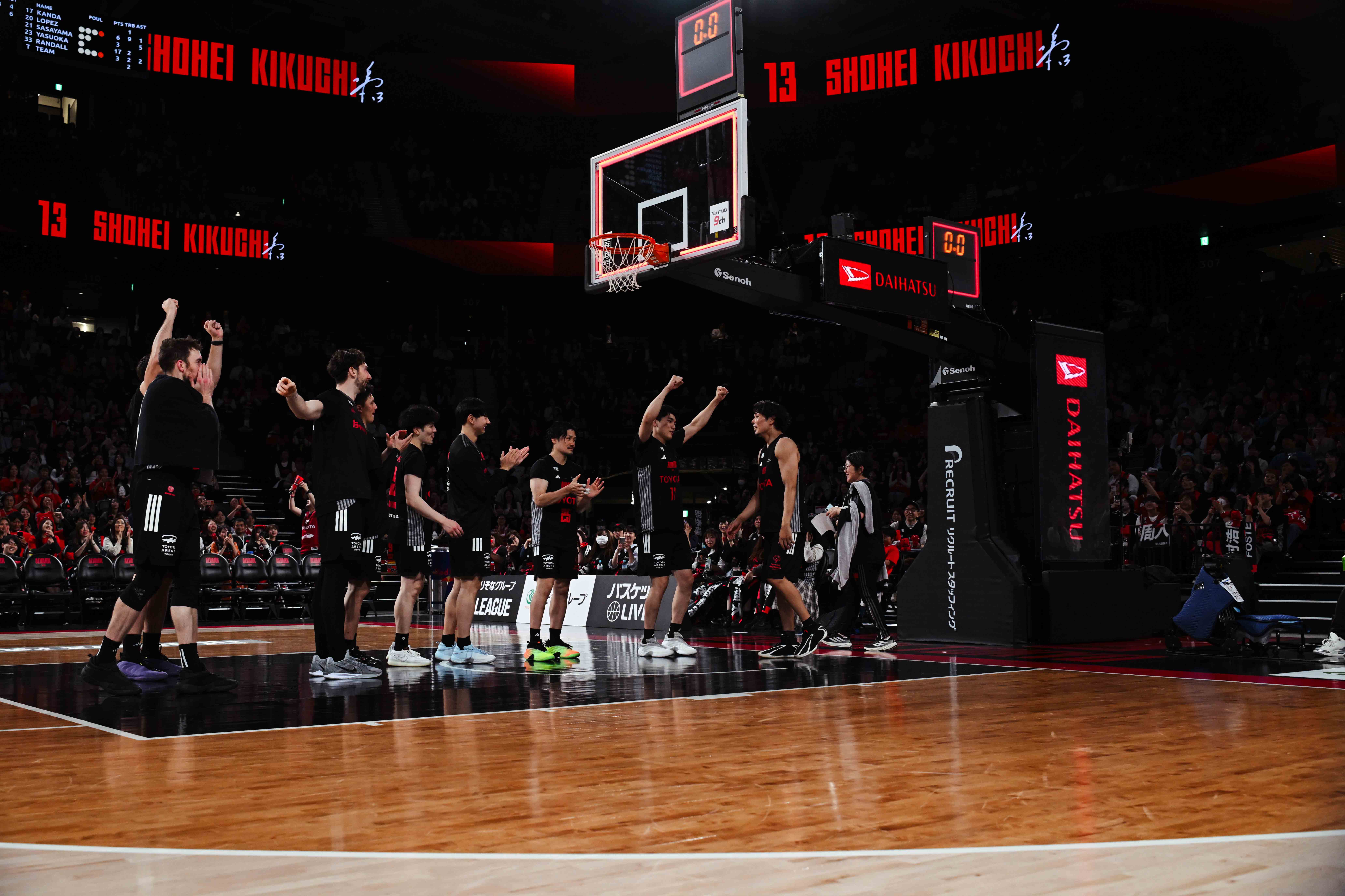 4月22日(水)に開催されたファイティングイーグルス名古屋戦は、序盤からリードを作り、リズムを掴みきれない時間も乗り越え、ロスター全員で試合を繋ぎ、ホームの後押しの中、勝利を収めました。“たとえベンチに入らなくても、コートに立つことがないかもしれない、それでも絶対に日々の準備は怠らない”そう誓ってハードワークを続ける#13 菊地祥平選手が再びホームのコートに立ち、次節、勢いある滋賀レイクスとの対戦を前に、また一つチームに勢いを与えてくれました。TOYOTA ARENA TOKYOの開業からここまで、苦しい時間のほうが多かったかもしれません。それでも多くの方の笑顔と歓声、そして応援に力をもらいながら進んできたレギュラーシーズンのホームゲームもあと2試合。今週末のこの2試合も、ぜひ会場でチームへの後押しをよろしくお願いします。
