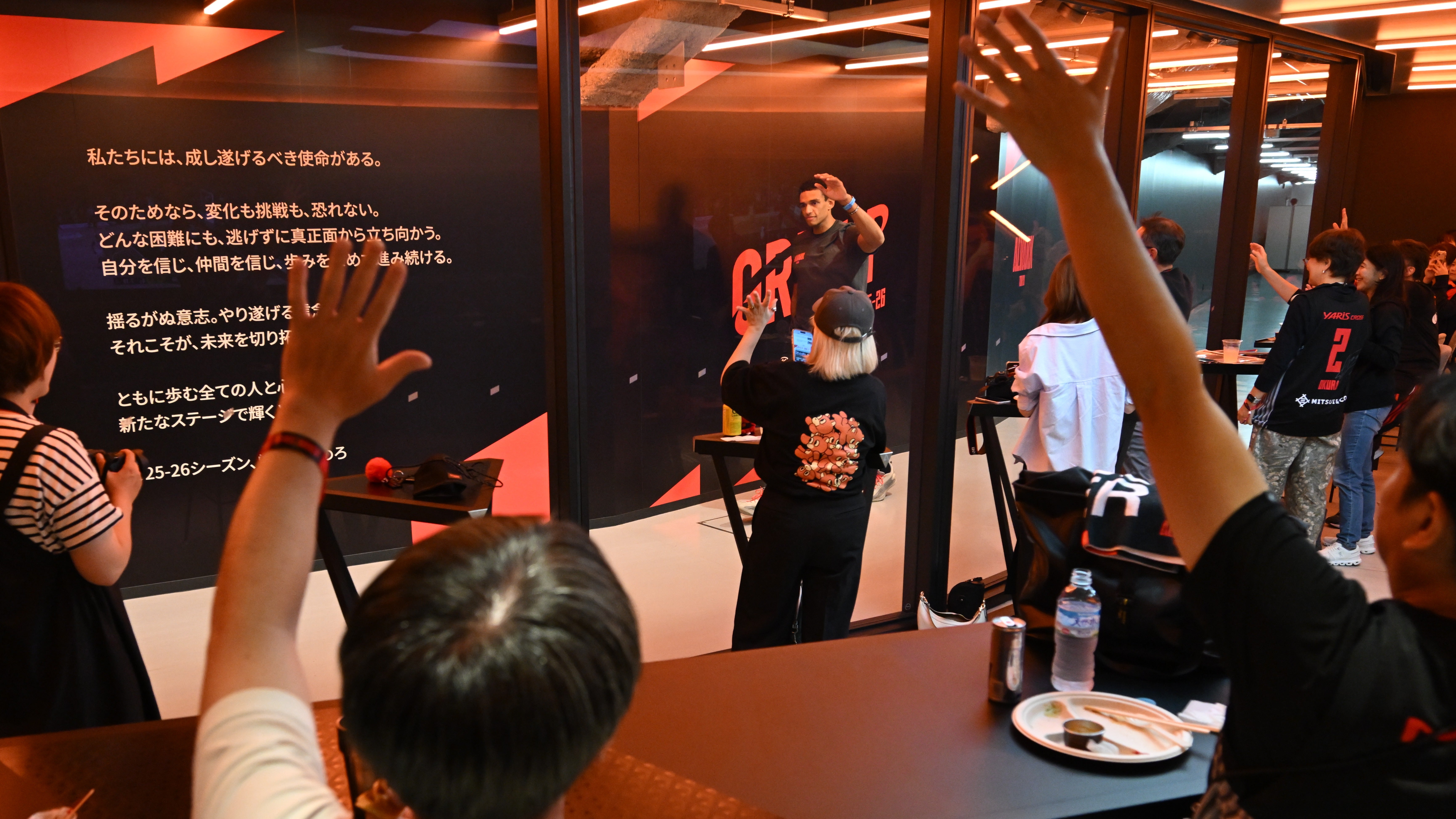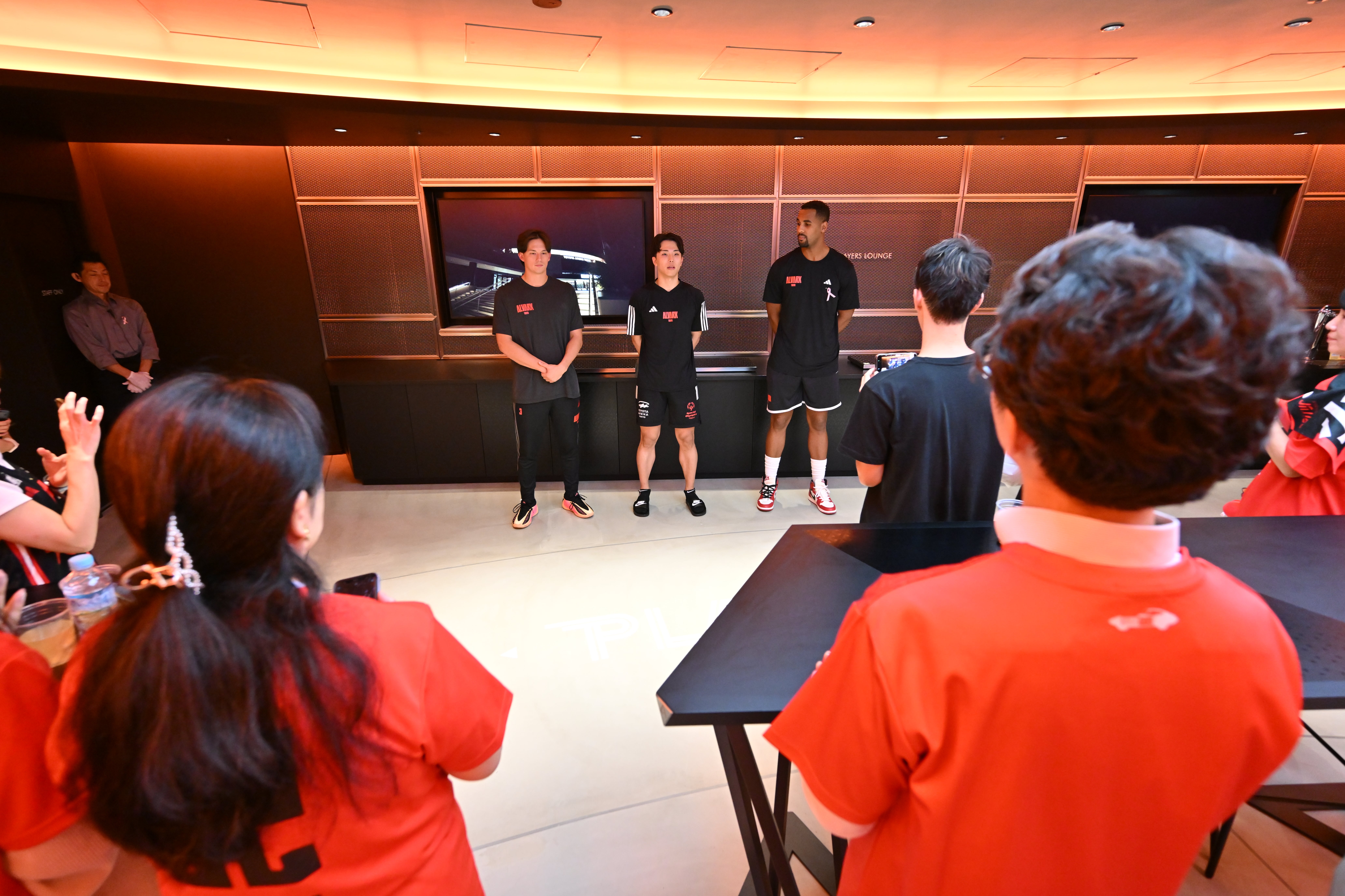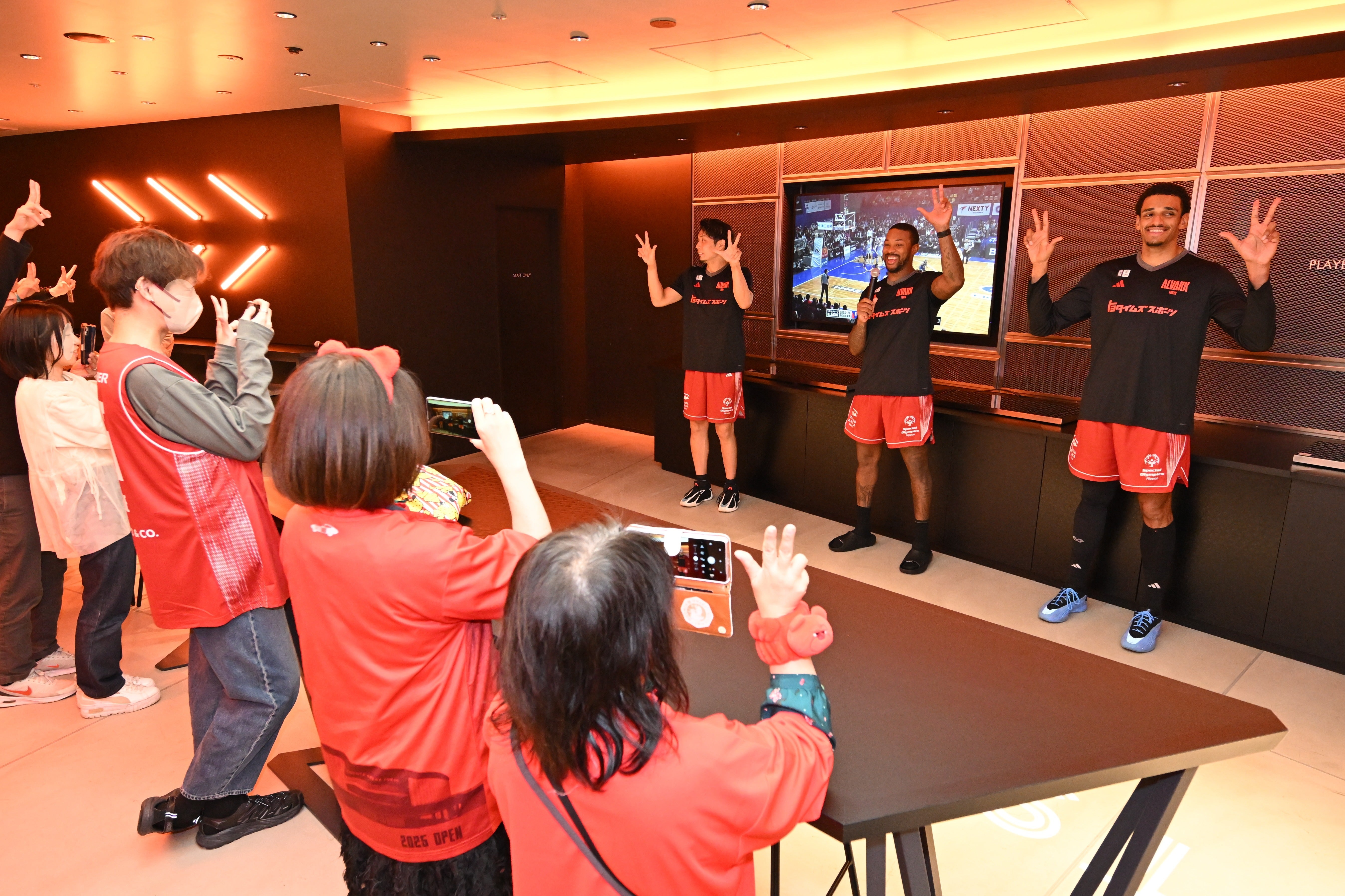 試合開始90分前頃にはチアリーダーとルーク、試合後には選手がプレーヤーズラウンジご利用者の皆さまへご挨拶に訪問いたします。