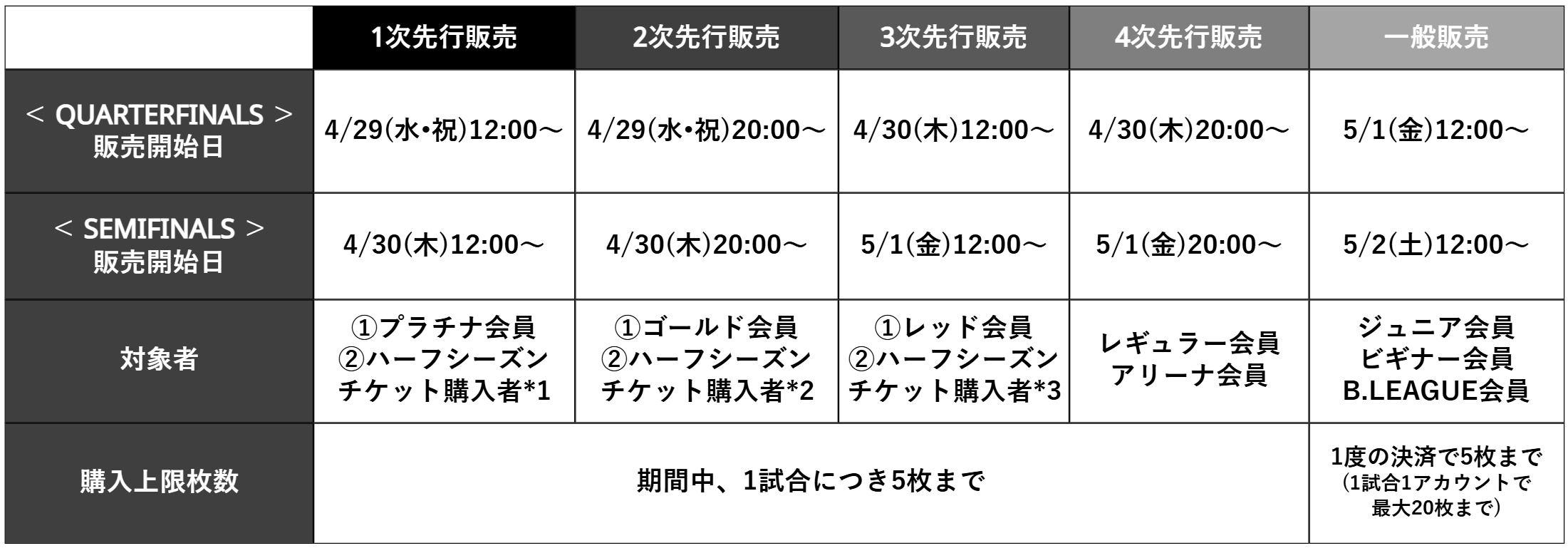 ホーム開催確定前からのチケット販売となるため、レギュラーシーズンのチケット販売と異なる点がございますので、必ずご確認ください。