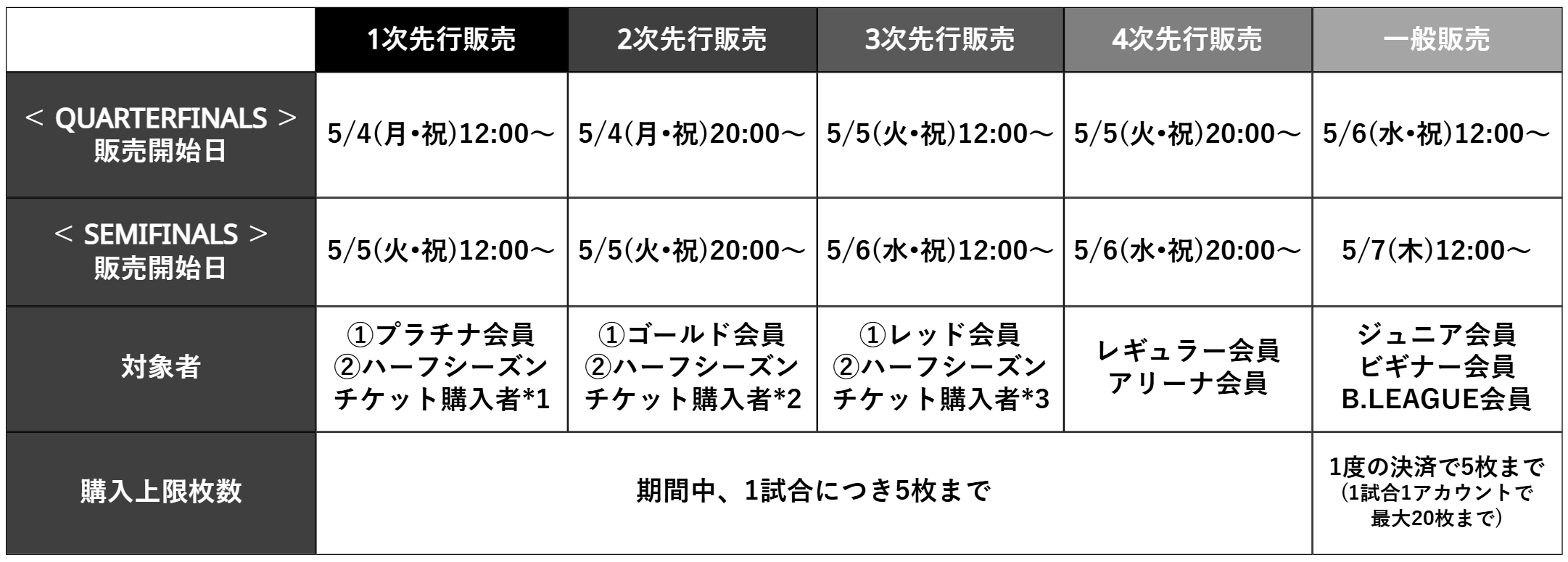 • 今後開催される試合の結果によってホーム開催が無くなった場合には、販売を中止し、すべてのチケットが払い戻しとなります。また、ホーム開催となりGAME3が開催されない場合には、GAME3のみ払い戻しの対象となります。