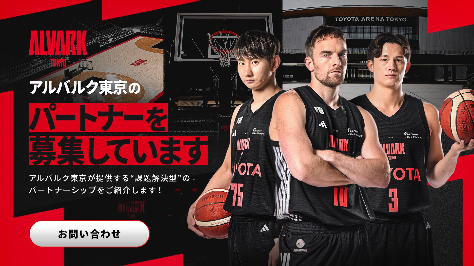 2025-26シーズン パートナー紹介 パートナー ダイヤモンドパートナー プラチナパートナー ゴールドパートナー シルバーパートナー コミュニティパートナー ALVARK Willサポーター アカデミーパートナー サプライヤー アルバルク東京と ビジネスの拡大、企業のさらなる成長の取り組みをご一緒しませんか?
